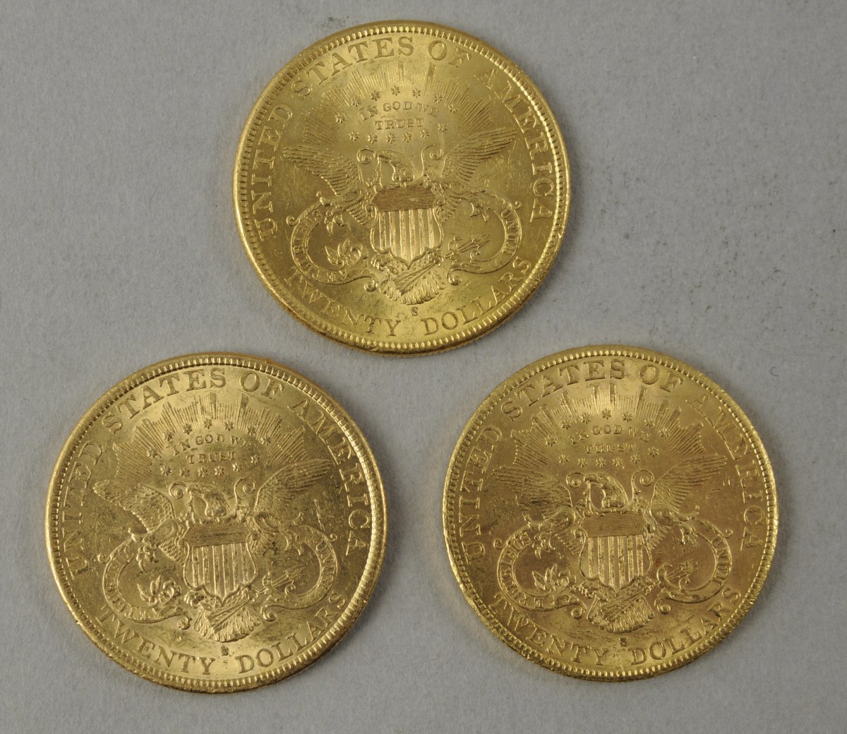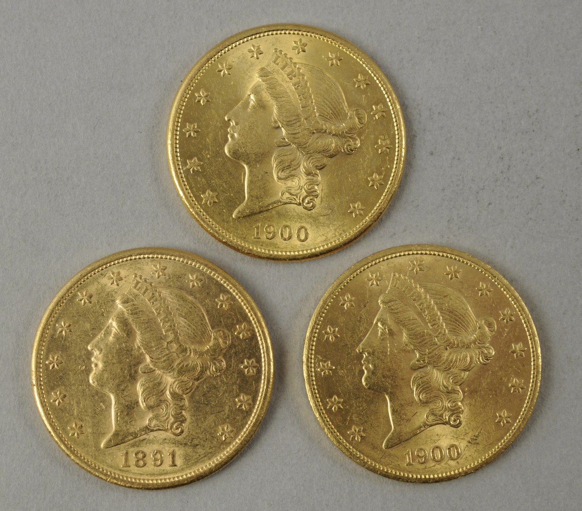 LOT, USA : trois pièces de 20 dollars or, deux de 1900 et 1891 (San Francisco). SUP