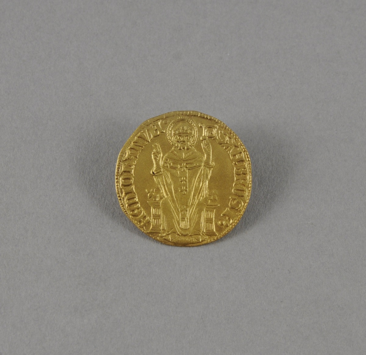 ITALIE. MÉDAILLE EN OR dite "Ambrogino d'oro" figurant, à l'avers, St Ambroise entouré de la mention ".S.AHBROSI. HEDIOLANVH. Le revers représente St Gervais et St Protais entourés de la mention ".S.GERVASI' S.PROTASI'" et centré de la mention "IÔÊS...VICECO-E". Poinçons italiens de forme hexagonale, l'un marqué "750" et l'autre "2(?)MI". XXème.