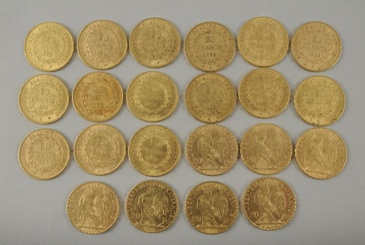 FRANCE, 22 pièces de 20F or, IIIeme Republique : 15...