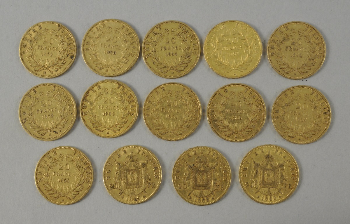 FRANCE, 14 pièces de 20F or, Napoléon III : 11...