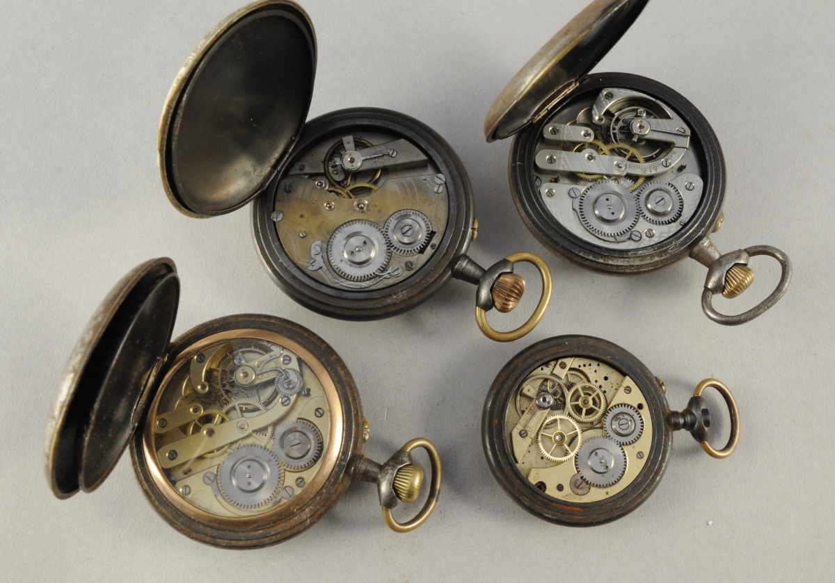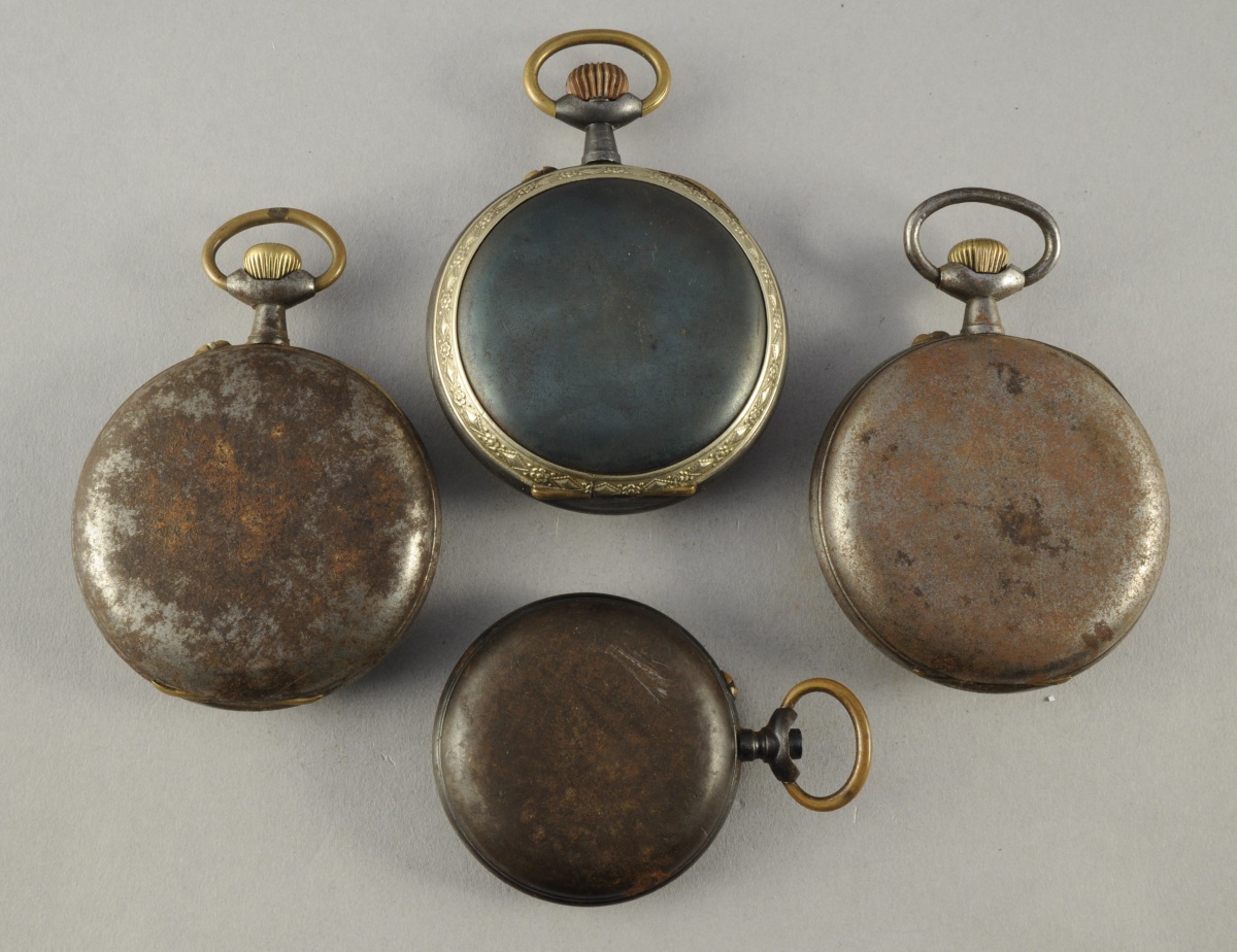 LOT DE 3 RÉGULATEURS DE CHEMIN DE FER en acier, à remontoir au pendant.