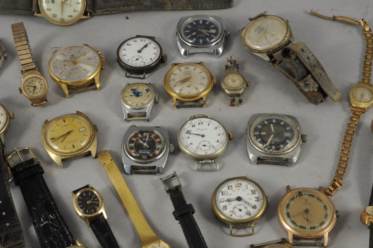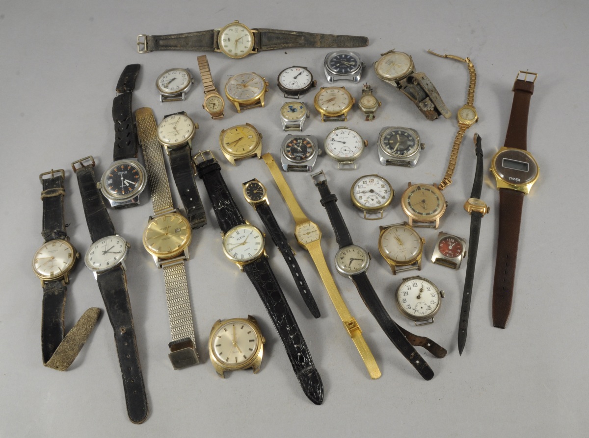 LOT DE 31 MONTRES-BRACELETS d'homme et de dame en métal, métal argenté et métal doré. Il comprend notamment une signée "Longines", une autre "Normandia" ou encore "Lings" et de nombreuses "Kelton". Plusiers à cadran double. Certaines avec leurs bracelets.