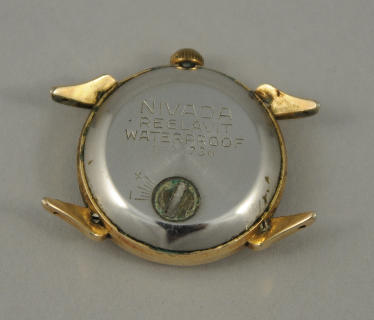 -UNE MONTRE-BRACELET d'homme en métal doré signée "Nivada / Reglavit".