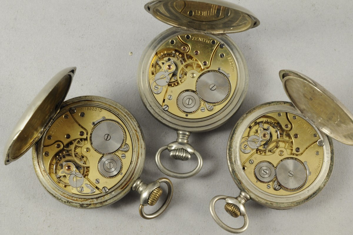 LOT DE TROIS MONTRES DE GOUSSET à remontoir au pendant de marque ZENITH.