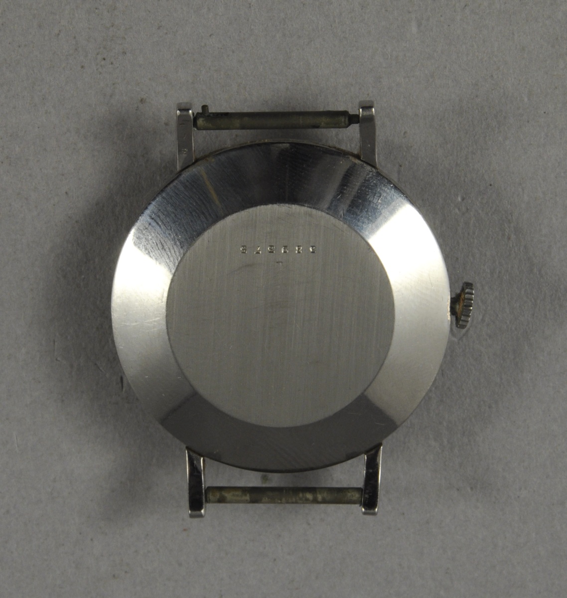 JAEGER-LECOULTRE. MONTRE DE POIGNET d'homme de forme ronde en acier. Cadran de couleur indiquant les heures en chiffres arabes et index bâtonnets. Aiguilles des heures et minutes or et trotteuse centrale en acier bleui. Mouvement mécanique signé et numéroté "430862". Le boîtier : "L. 389375". État de marche.