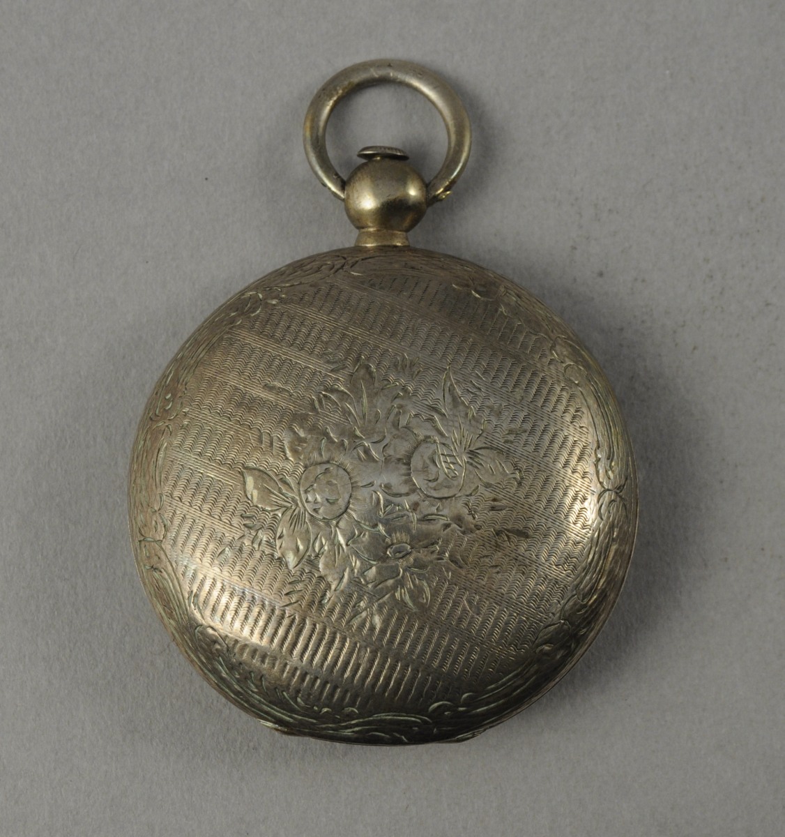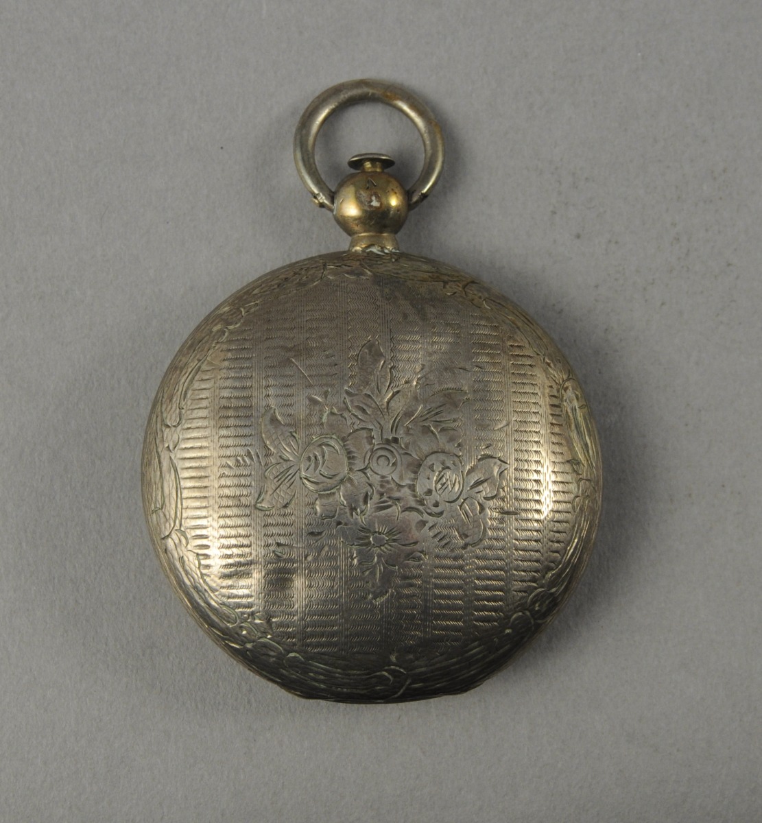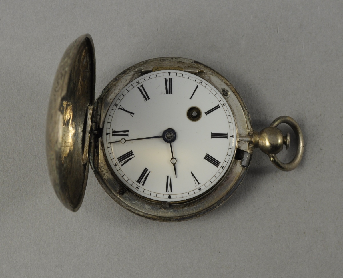 MONTRE À COQ, en argent. Le cadran émaillé blanc indiquant les heures en chiffres romains. Boîtier ciselé d'un bouquet de fleurs sur fond guilloché dans un encadrement de volutes. Coq à décor ajouré de rinceaux. Maîtres-Orfèvres : PW, un losange et XB. Poinçon Minerve deuxième titre.