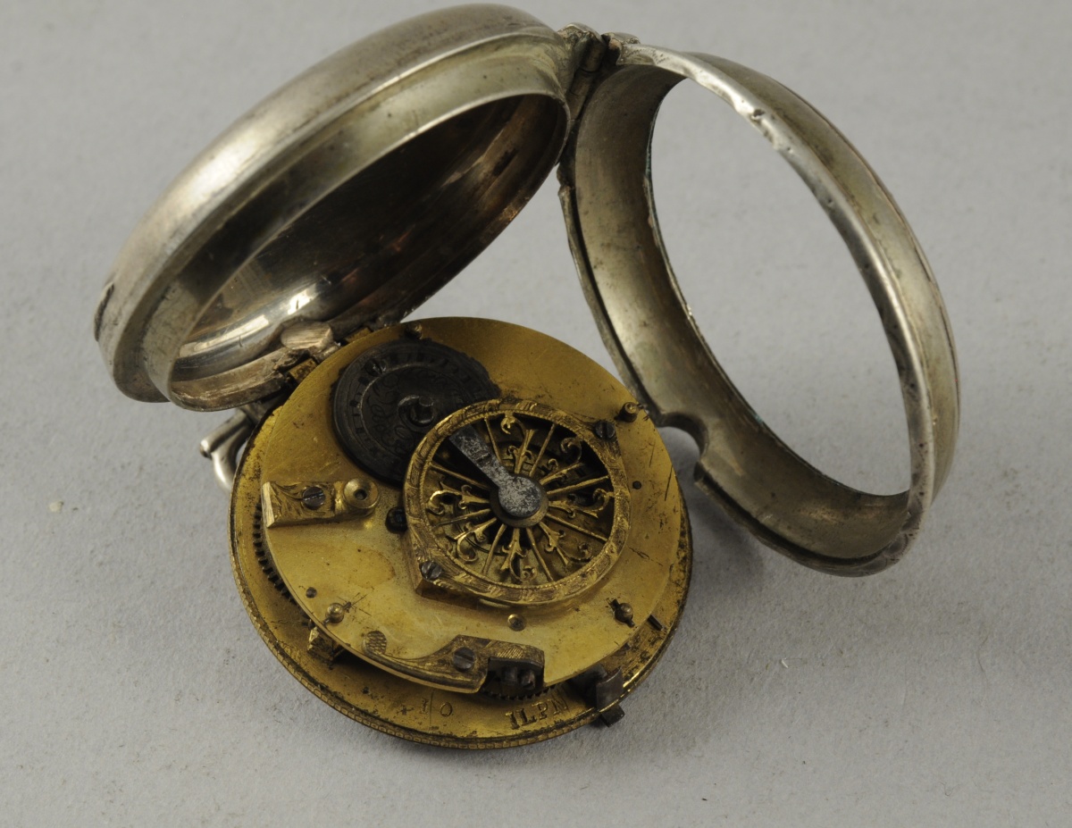 Diam. 5 cm. Poids brut 89.2 g. (petits manques et fêles à l'émail, manque le verre et les aiguilles)