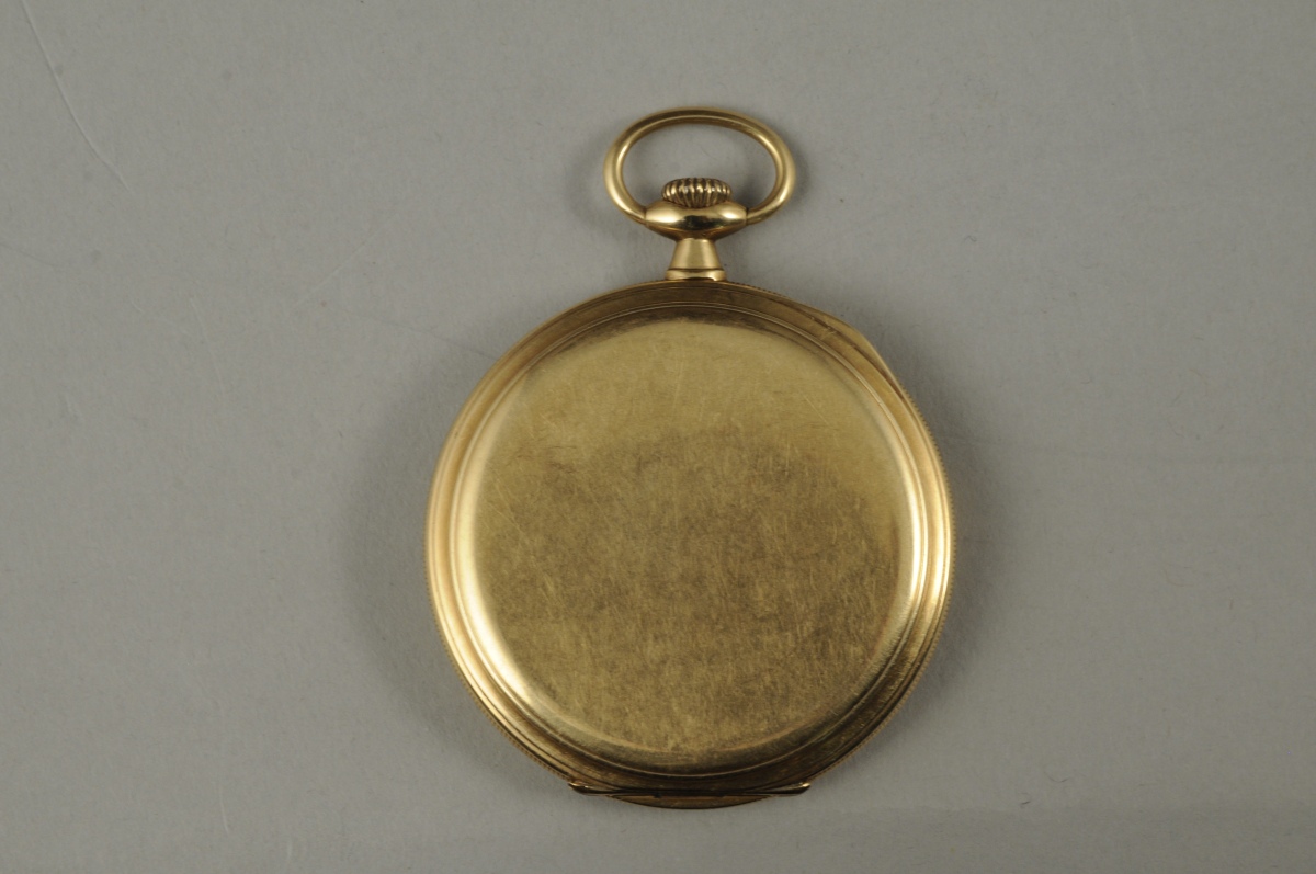 MONTRE DE GOUSSET SCHILD FRERES & CIE extra plate en or, à remontoir. Double cadran indiquant les heures en chiffre arabes et les secondes. Boitier numéroté "2009922" et marqué "GRAND PRIX BRUXELLES 1910".