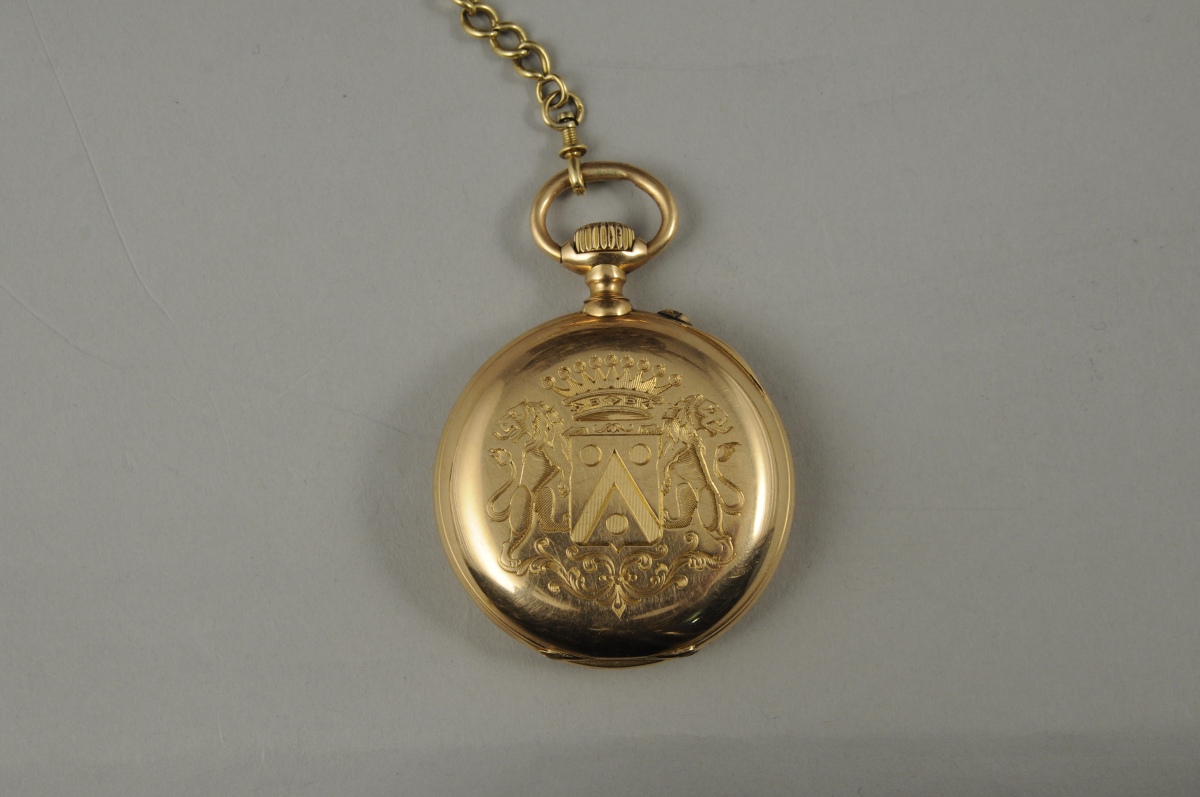 MONTRE DE GOUSSET à remontoir au pendant en or. Double...
