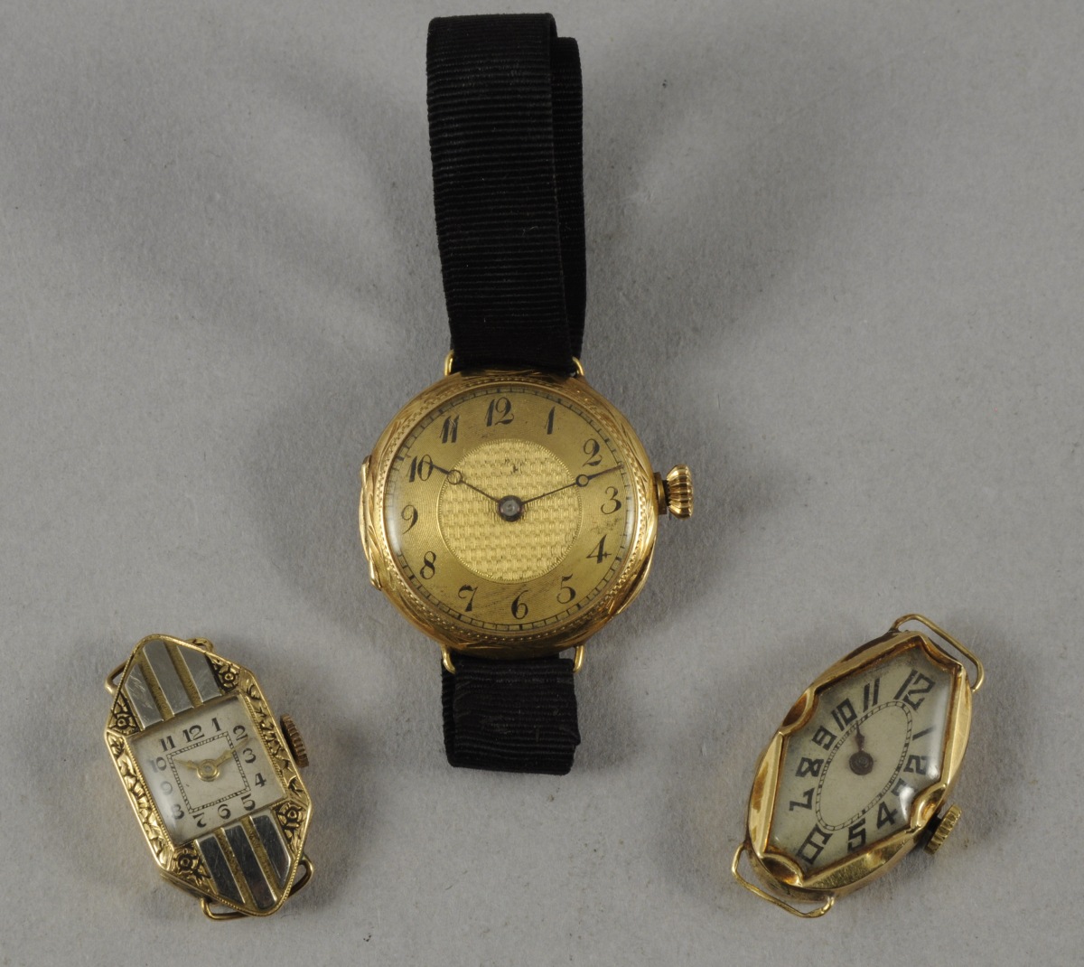LOT DE 3 MONTRES-BRACELET de dame en or.