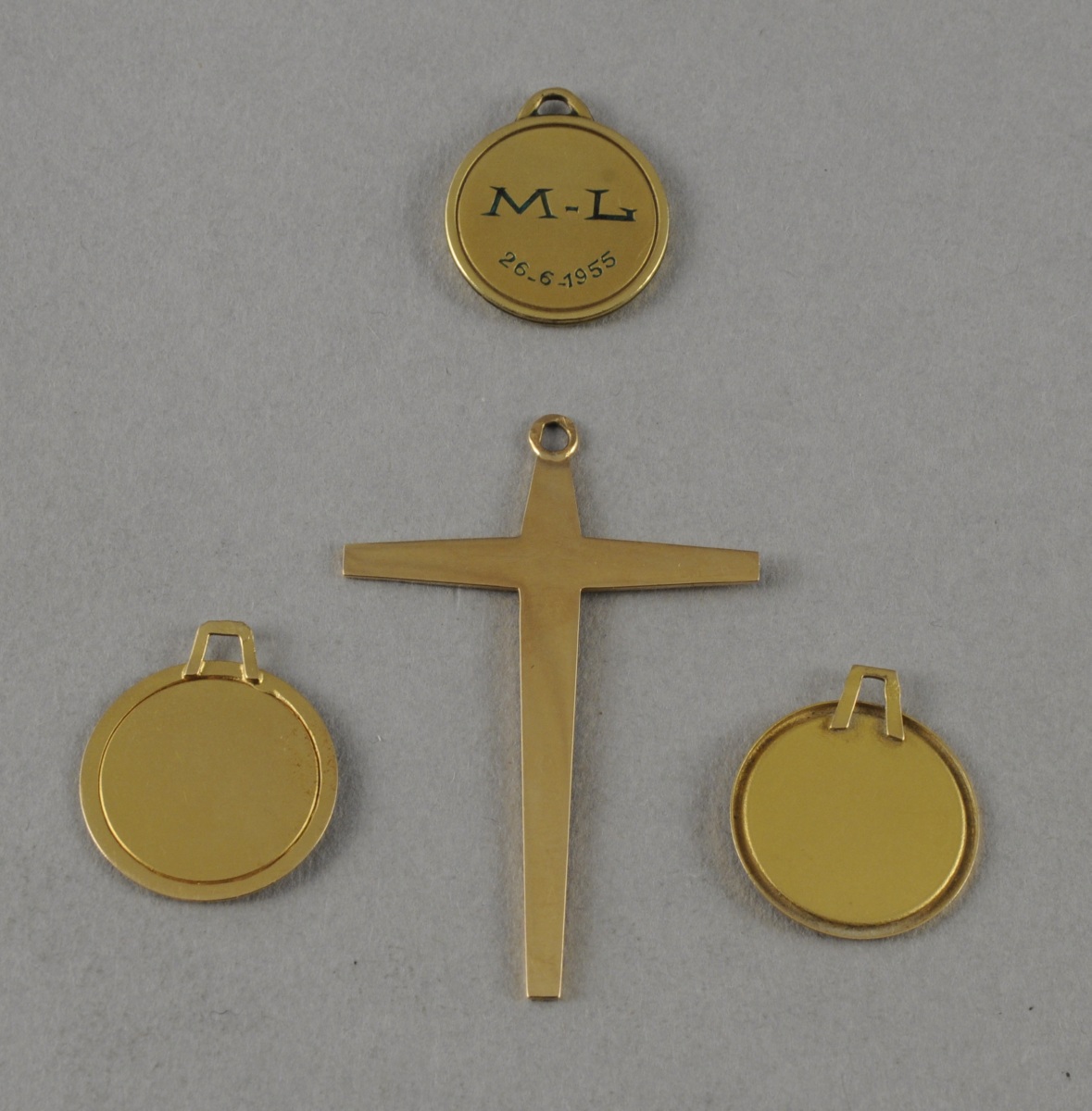 - UNE CROIX ciselée. Poids : 2,5 g.