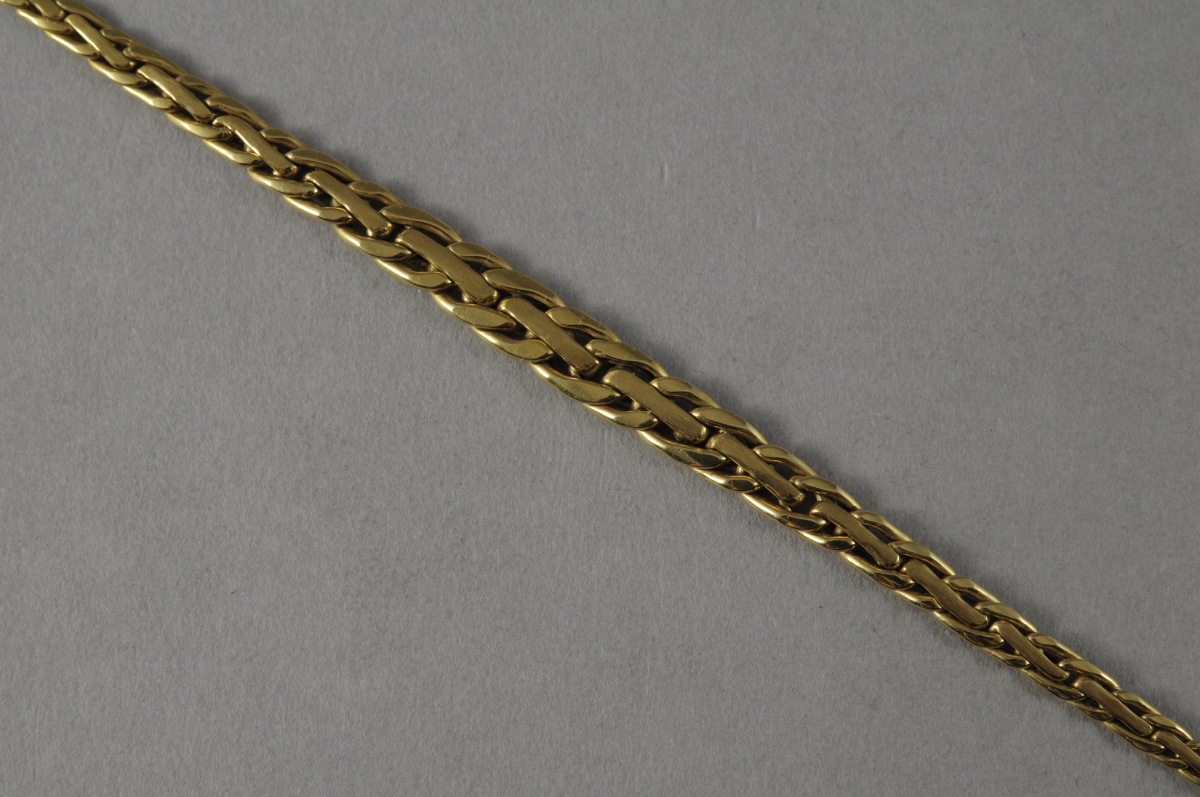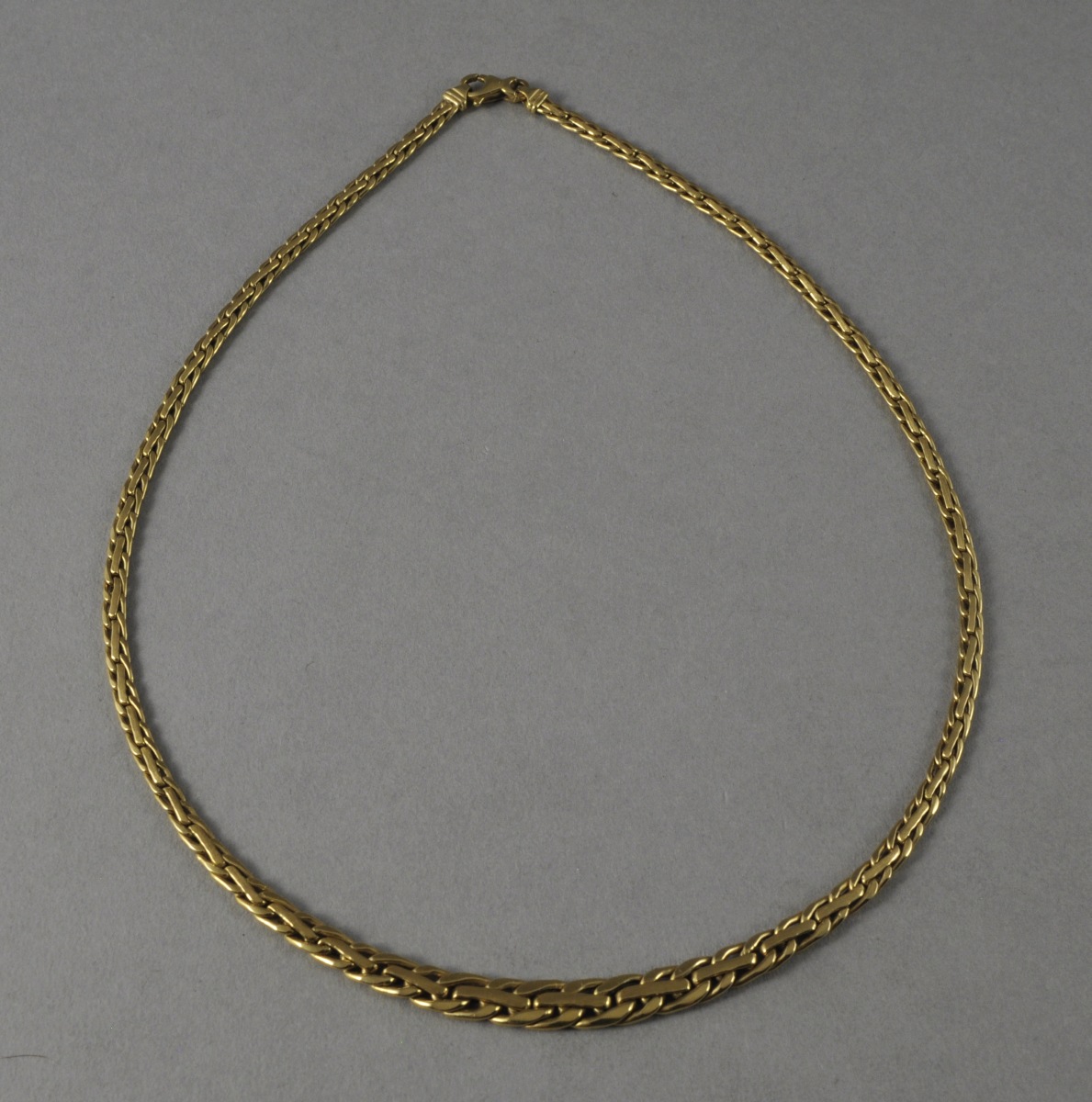 COLLIER articulé en or jaune à mailles gourmette en chute. Long. 42 cm. Poids brut : 8,9 g.