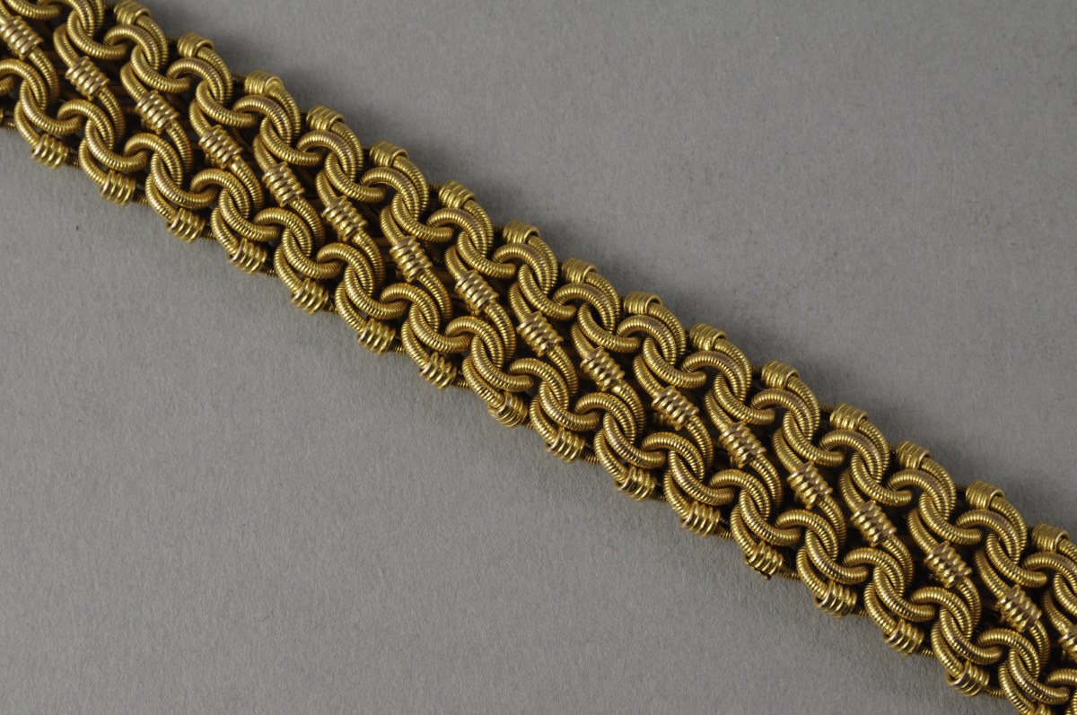 BRACELET articulé en or jaune à maille cordage. Long. 19,2, Larg. 1,5 cm. Poids brut : 39,2 g.
