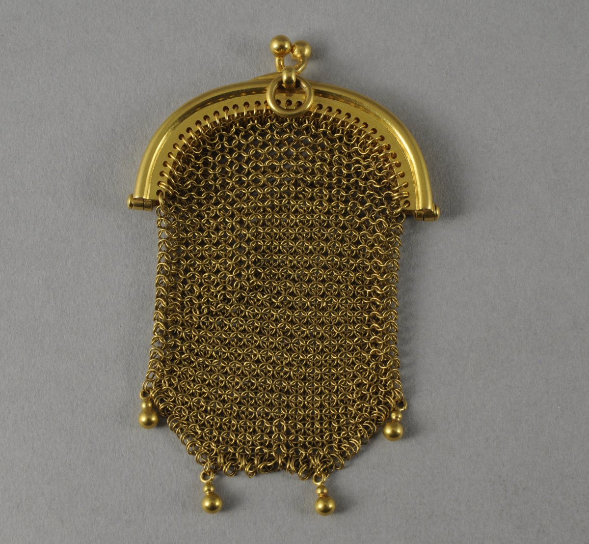 BOURSE en or jaune cotte de maille terminée par quatre petites boules. Poids brut : 21,3 g.