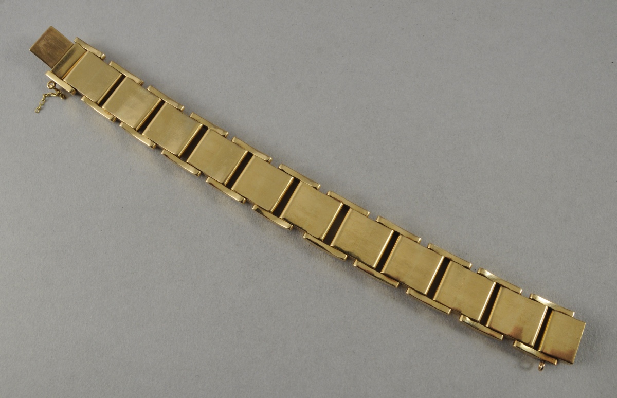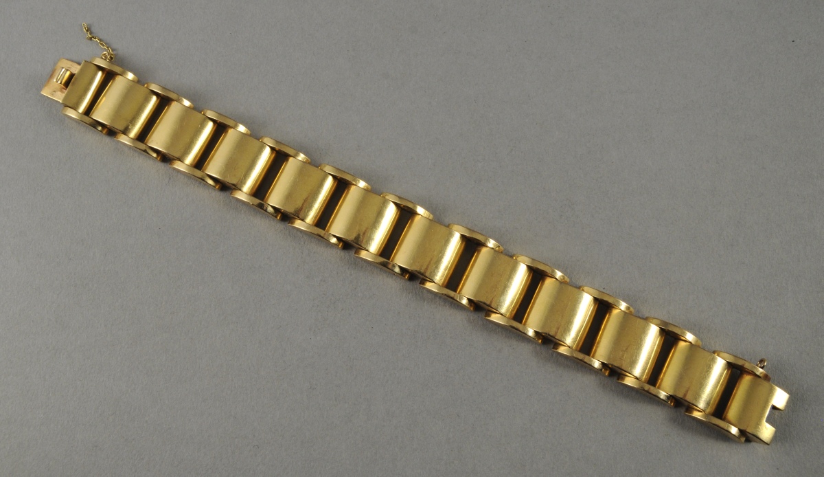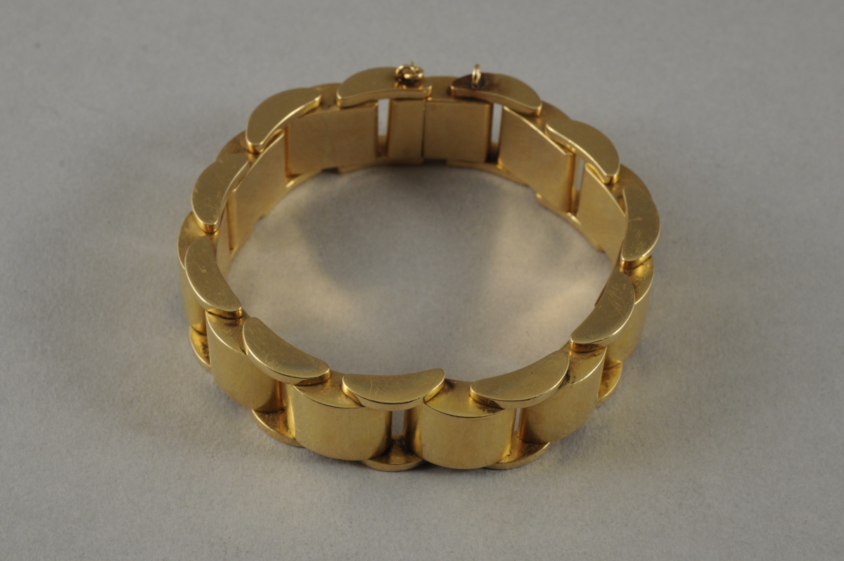 BRACELET tank en or jaune. Longueur. 18,5 cm.