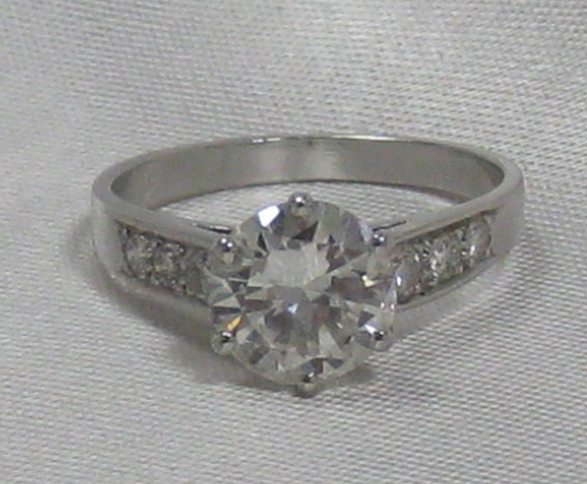 BAGUE-SOLITAIRE en or blanc avec au centre un diamant de 1,58 carat agrémenté de six diamants taille moderne de 0.25 carat.