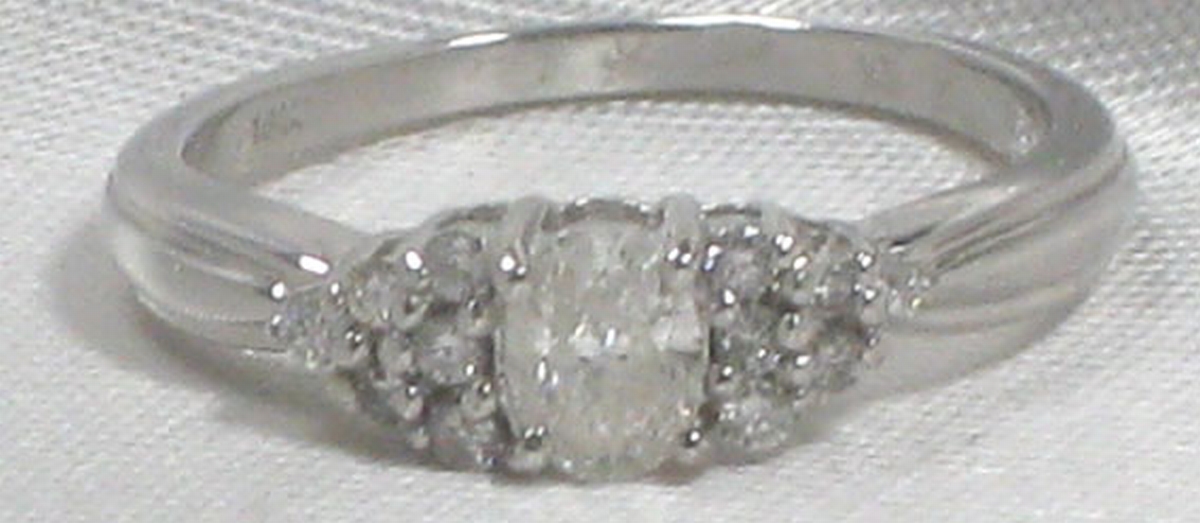 BAGUE en or blanc ornée d'un diamant taille ovale agrémentée de 12 diamants taille moderne de 0,5 carat.