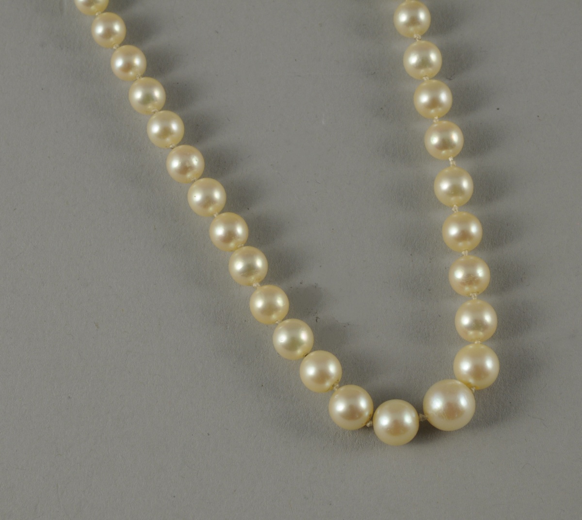 COLLIER composé de 80 perles de culture en chute. Fermoir et chaîne de sûreté en or (à charge de contrôle). Long. 53 cm. Écrin. (le fermoir à refixer au collier)