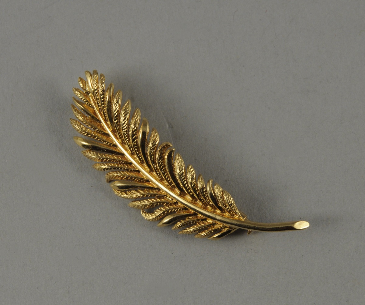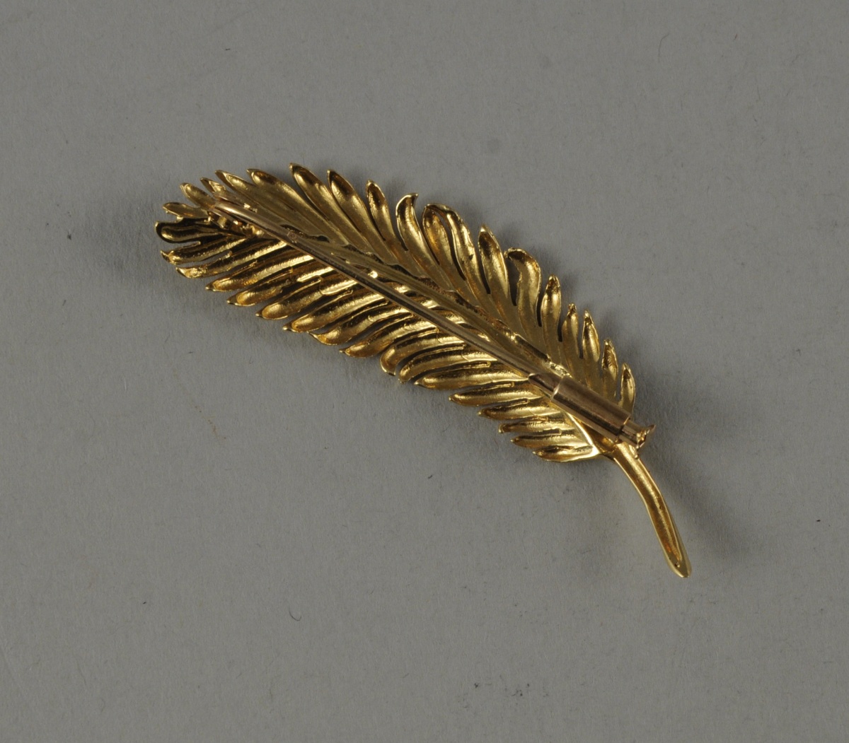 BROCHE feuille en or jaune gravé.Poids : 6 g.