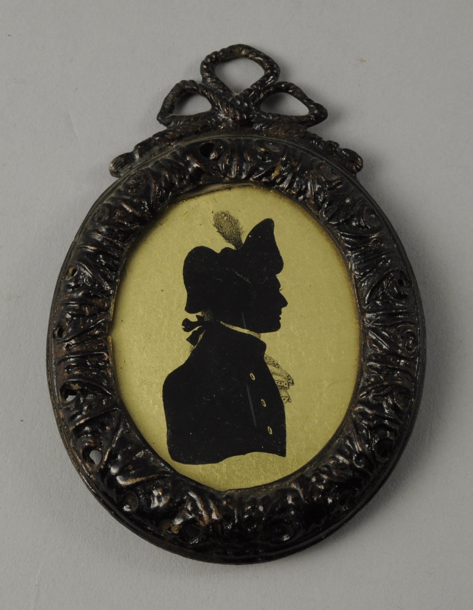SILHOUETTE d'homme dans le goût du XVIIIème. Sur cuivre. Format ovale. 5,5 x 4,5 cm.