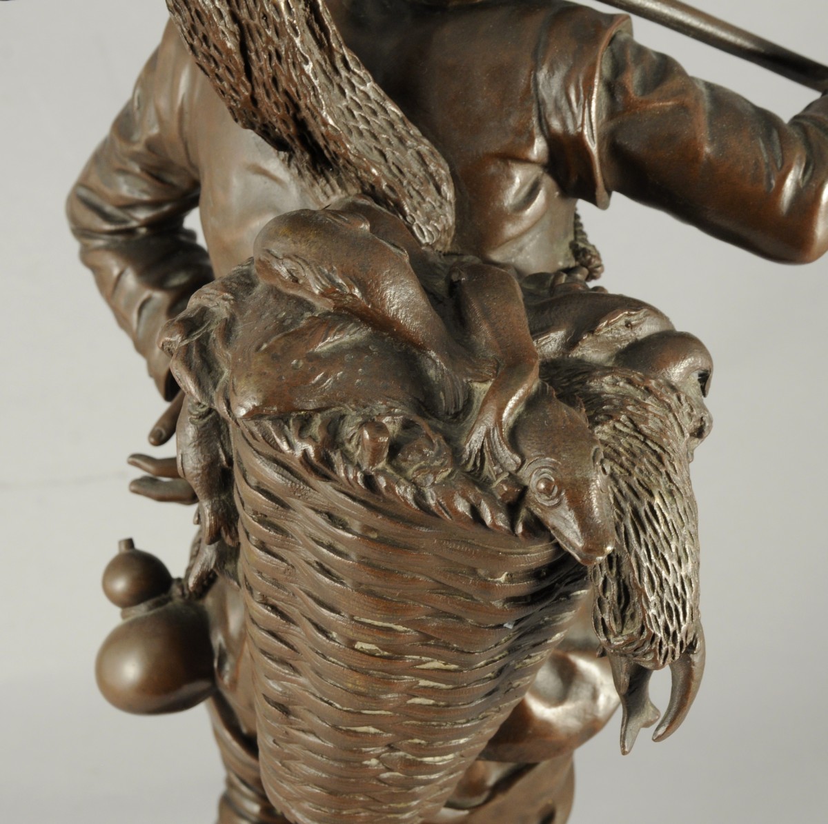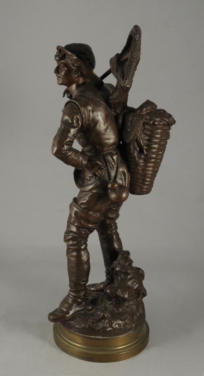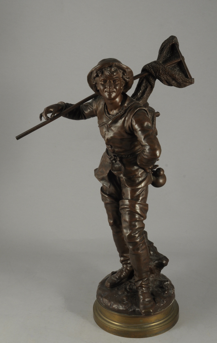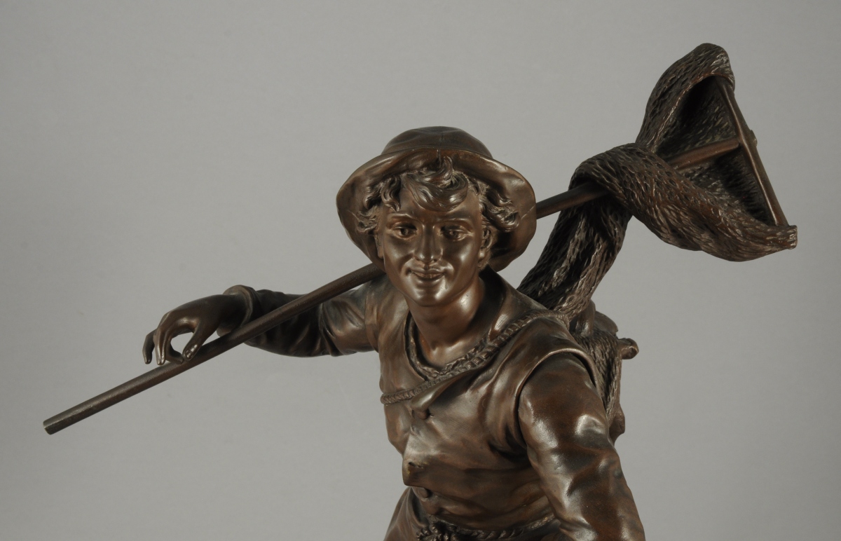 Hippolyte François MOREAU (1832-1927) Pêcheur à la crevette.Bronze patiné sur...