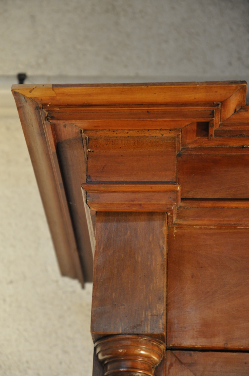 BUFFET DEUX-CORPS en merisier teinté et mouluré. Il ouvre par...