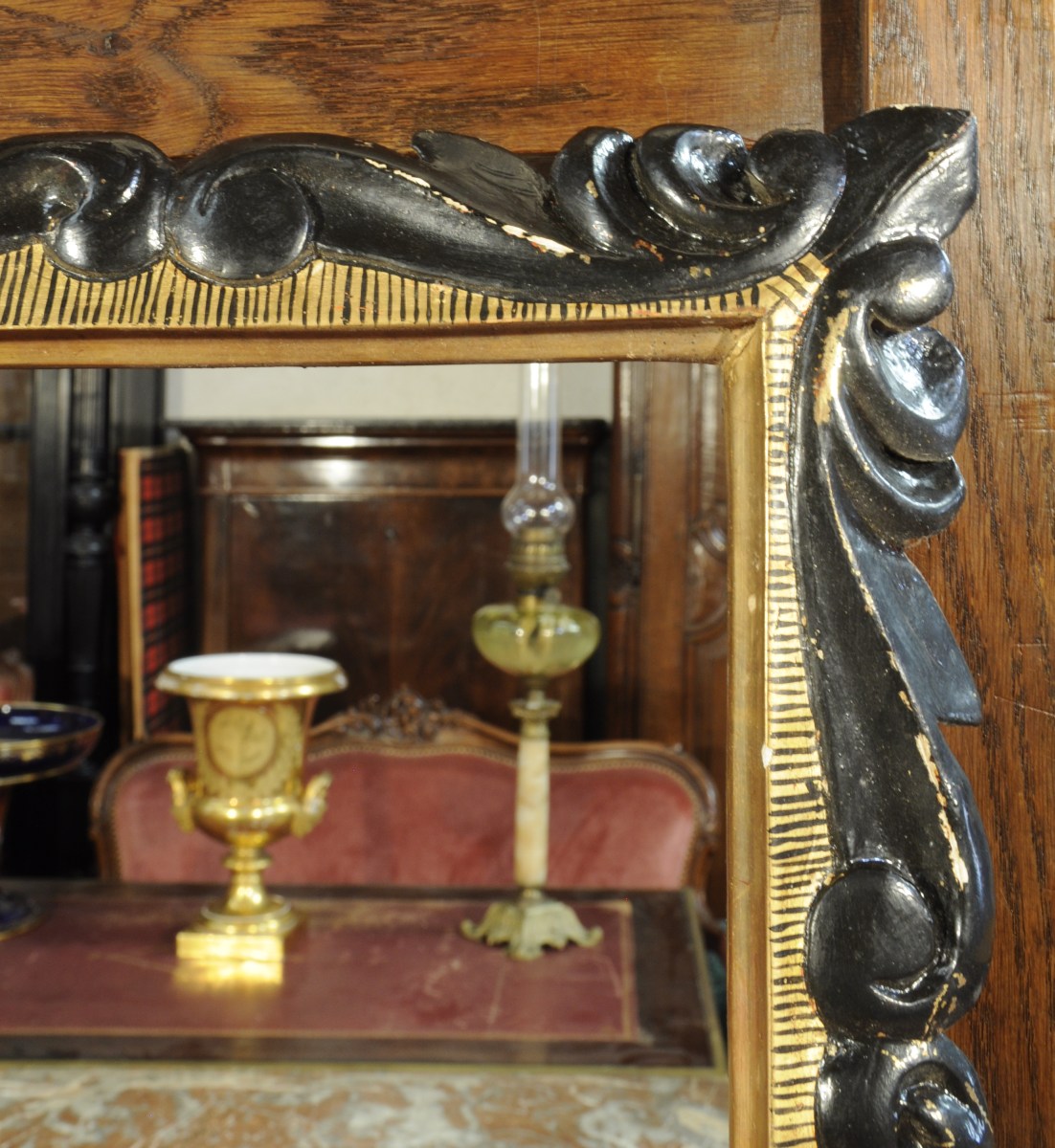 DEUX PAIRES de CADRES en bois doré et laqué noir de style Louis XV.