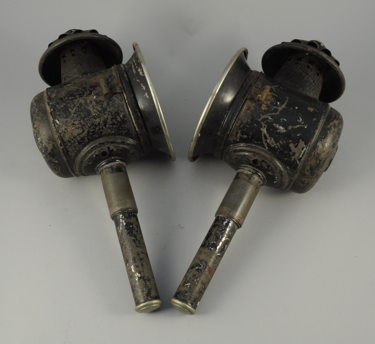 PAIRE DE LAMPES DE FIACRE en tôle laquée noire. Marquée "39bis".