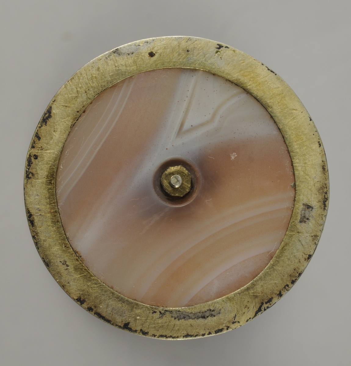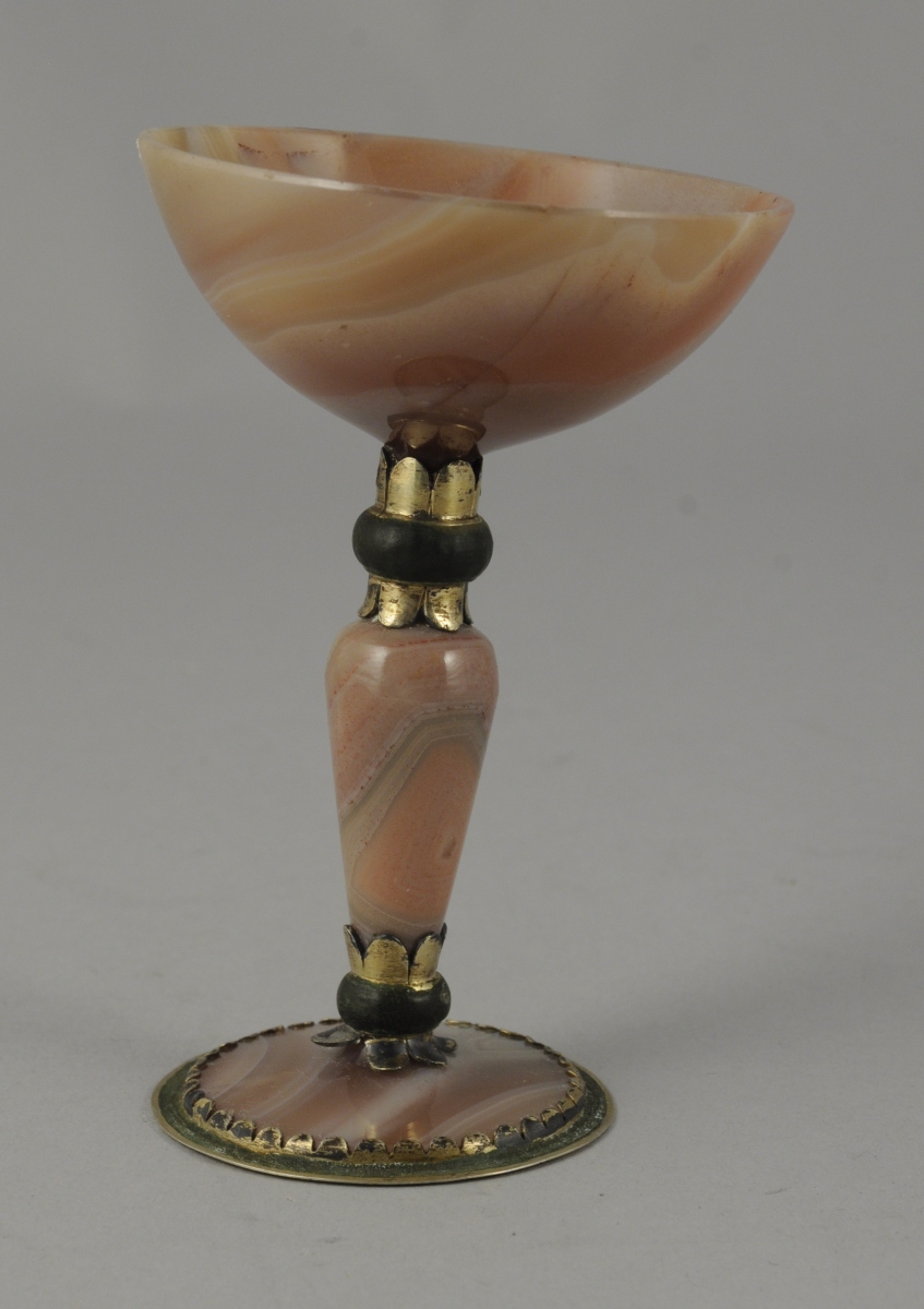 PETITE COUPE MONTÉE en pierre dure (?). Pied balustre, garnitures de bronze patiné et doré.
