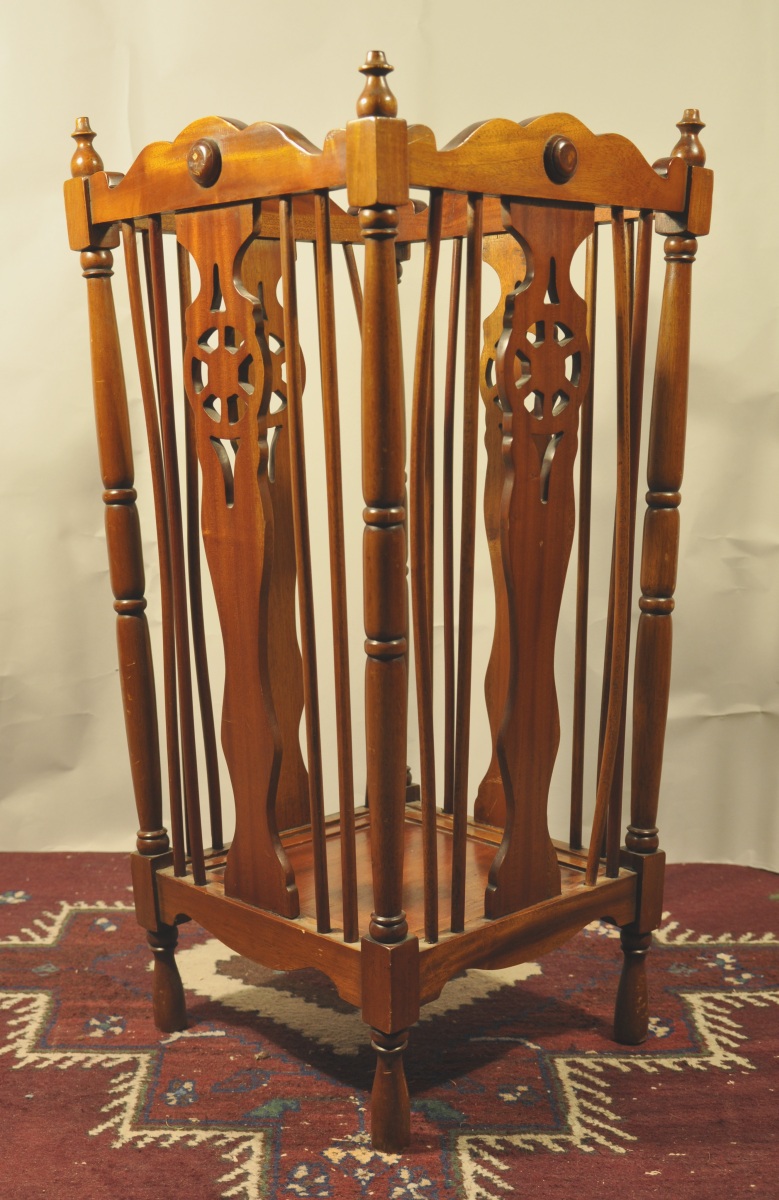 PORTE-CANNE en bois tourné, sculpté et ajouré de motifs floraux stylisés. XXème.