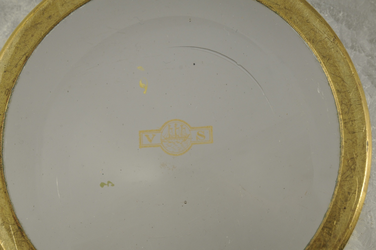 Victor SAGLIER (1809-1894). COUPE en verre dégagée à l'acide et à la roue à décor de violettes en émail peint et rehauts d'or. Monture en bronze doré : rang de perles, noeuds et guirlande fleurie. Monogramée "VS" au trois mats. Haut. 11, Diam. 23,5 cm (manques à l'émail et usures à l'or).