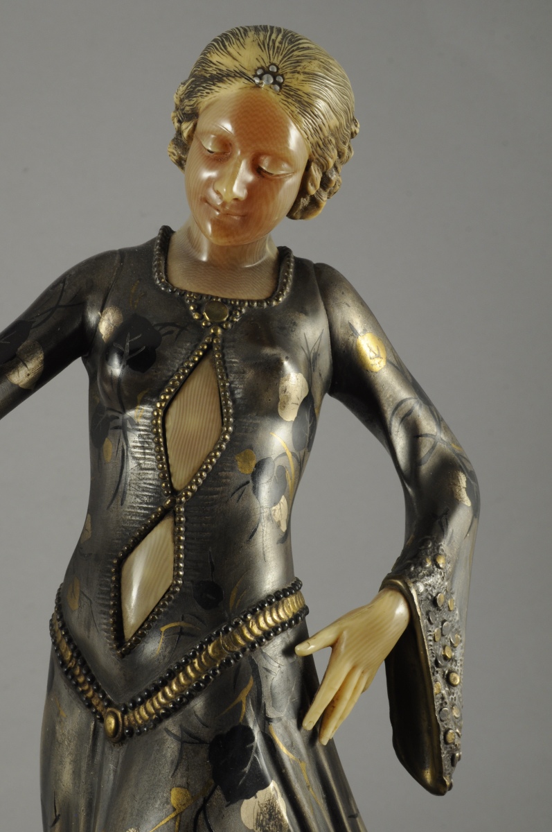 Régule, ivoirine et trois marbres. Signé.