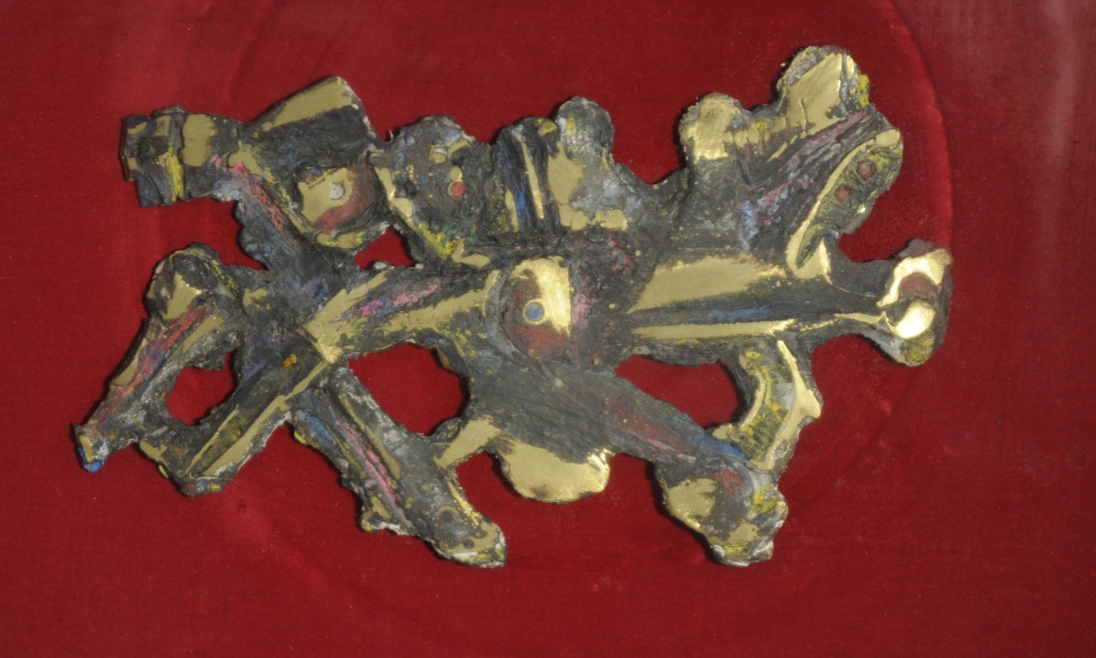 École du XXème.Composition abstraite. Bronze patiné et polychrome. Dans un...