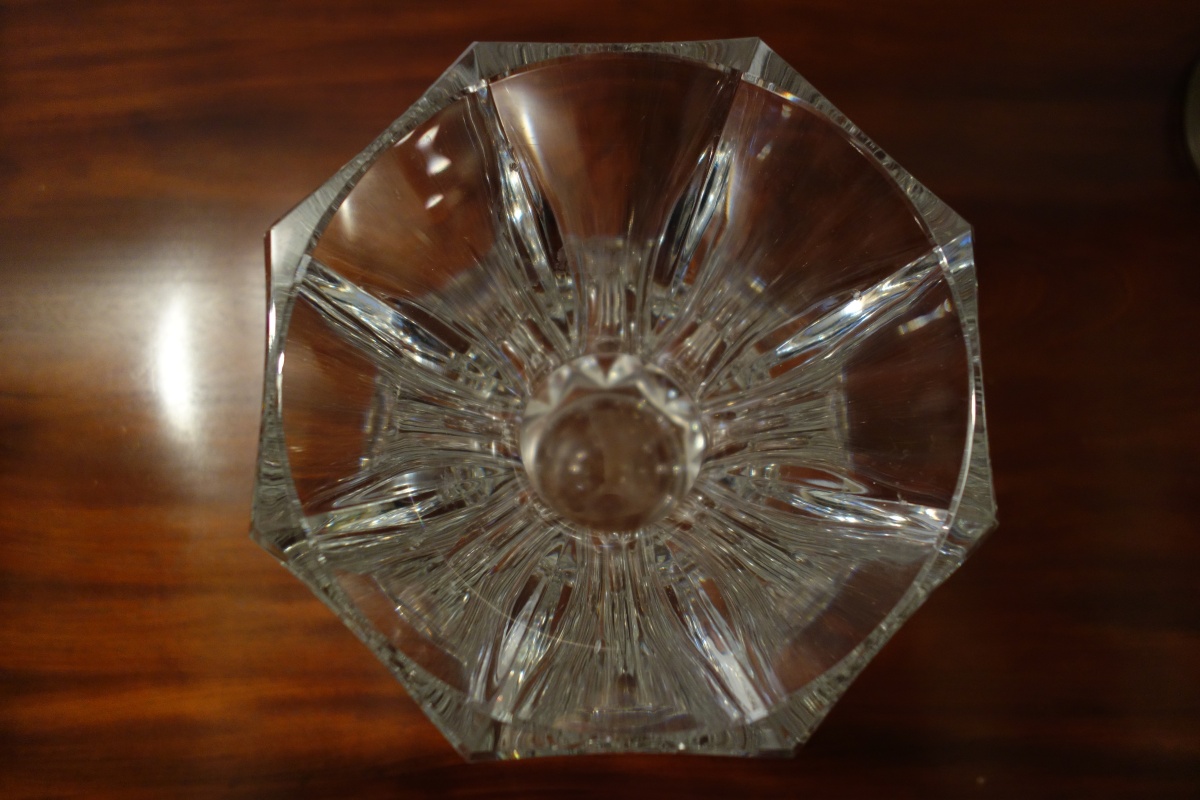 BACCARAT. VASE OCTOGONAL en cristal de forme pansue à facettes.Signé...