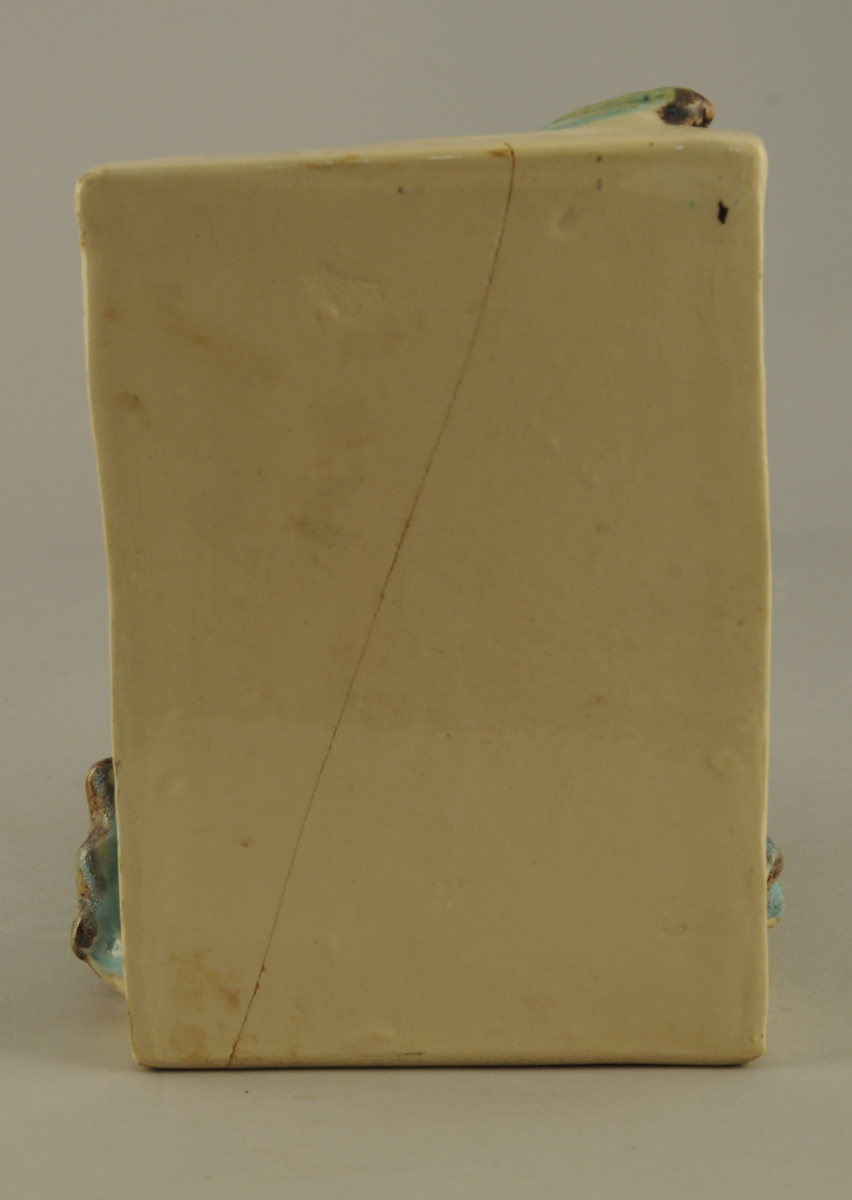 Haut. 17,5, Larg. 14, Prof. 20 cm. (petits éclats et restaurations. L'un accidenté au support et dont l'émail est plus rosé).
