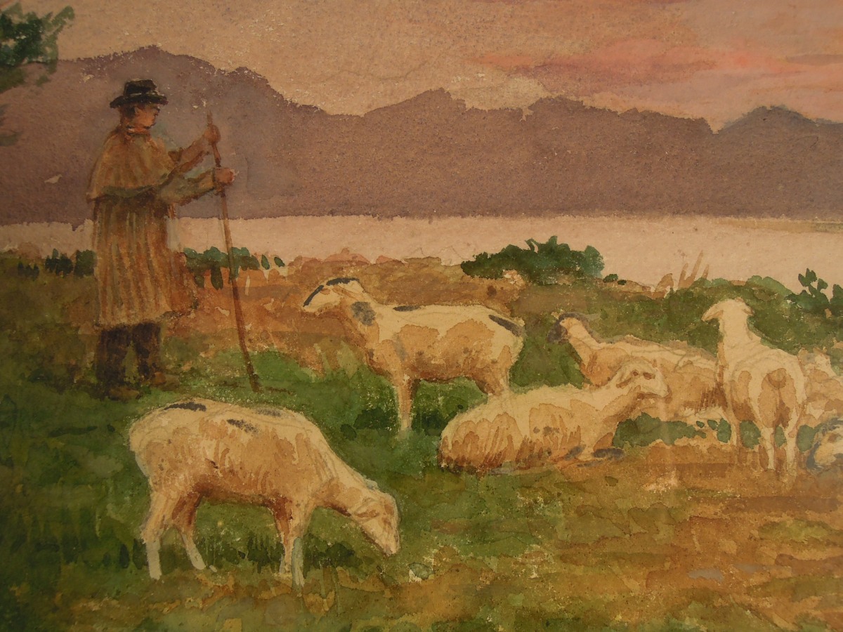 Troupeau prés d'un lac.