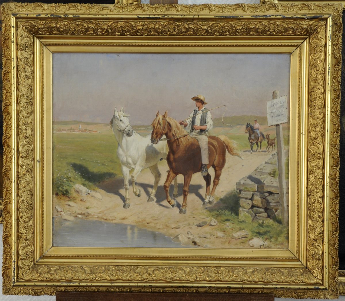 Jules Antoine VOIRIN (1833-1898). Le guardian et le cheval camarguais....