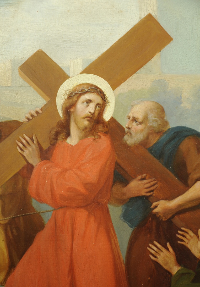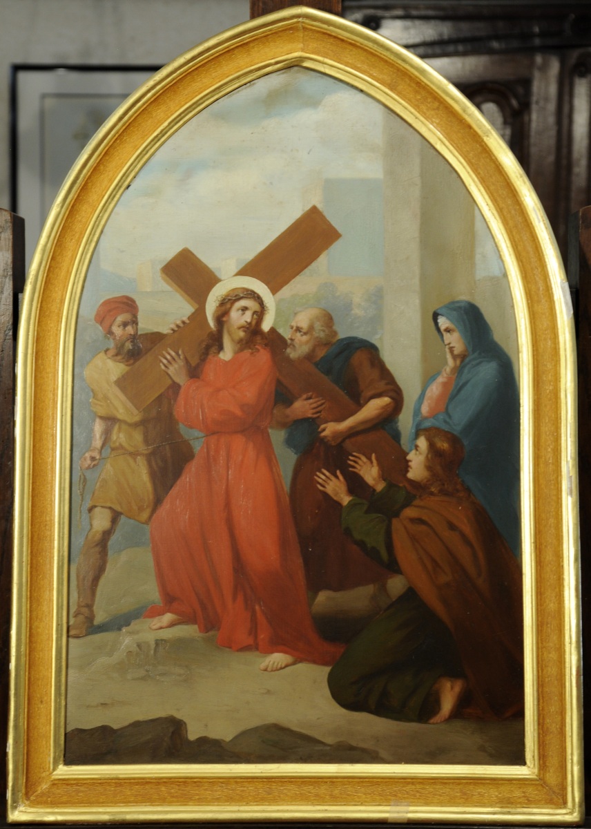 École EUROPÉENE du XIXème siècle.Portement de Croix.Huile sur cuivre.Au dos,...