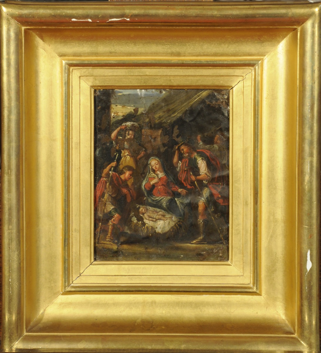 École ANCIENNE dans le goût du XVIIème siècle.Adoration des Bergers.Cuivre.16,5...