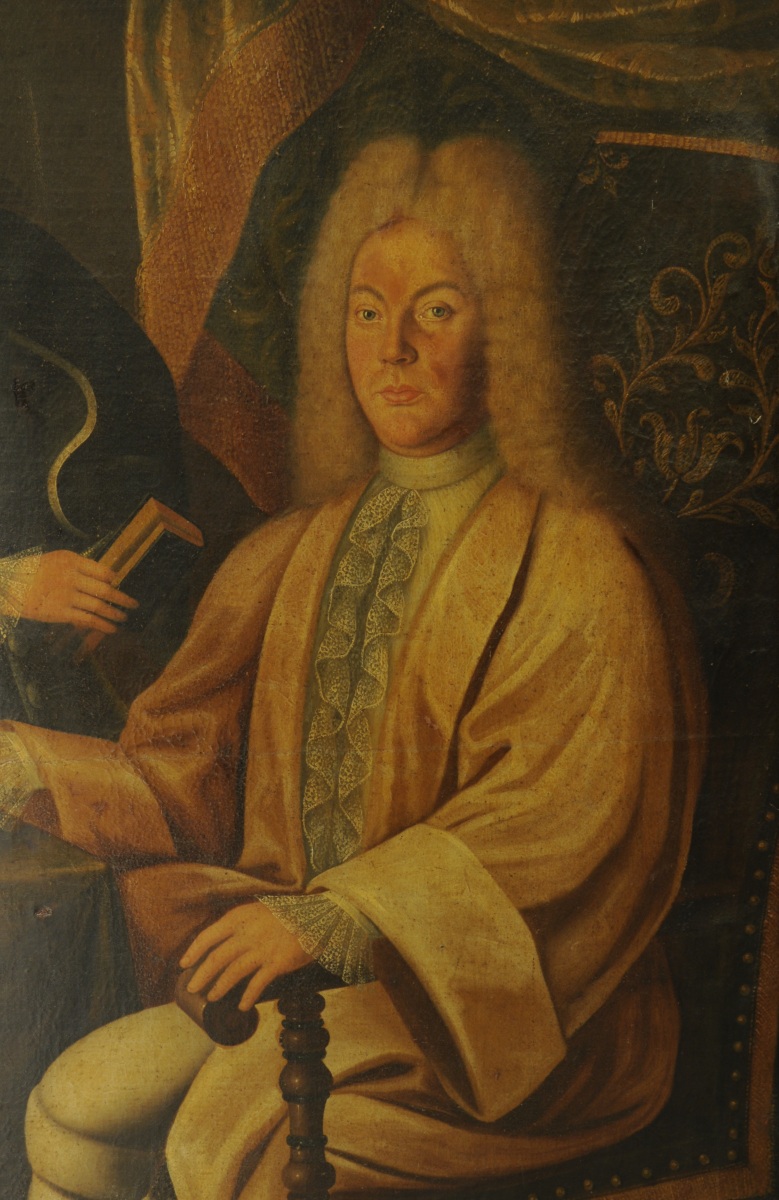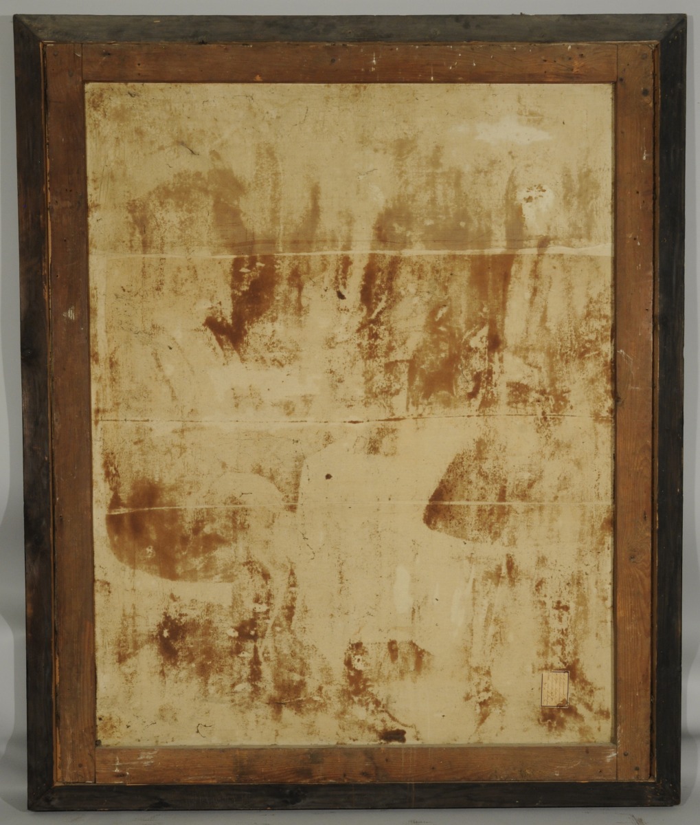 Toile. Étiquette manuscrite au dos : "Mr d'Appremont 1er président au parlement de Dijon et ses deux fils. Le portrait de mon gd oncle vient de Mérignac. A de Lavilléou."