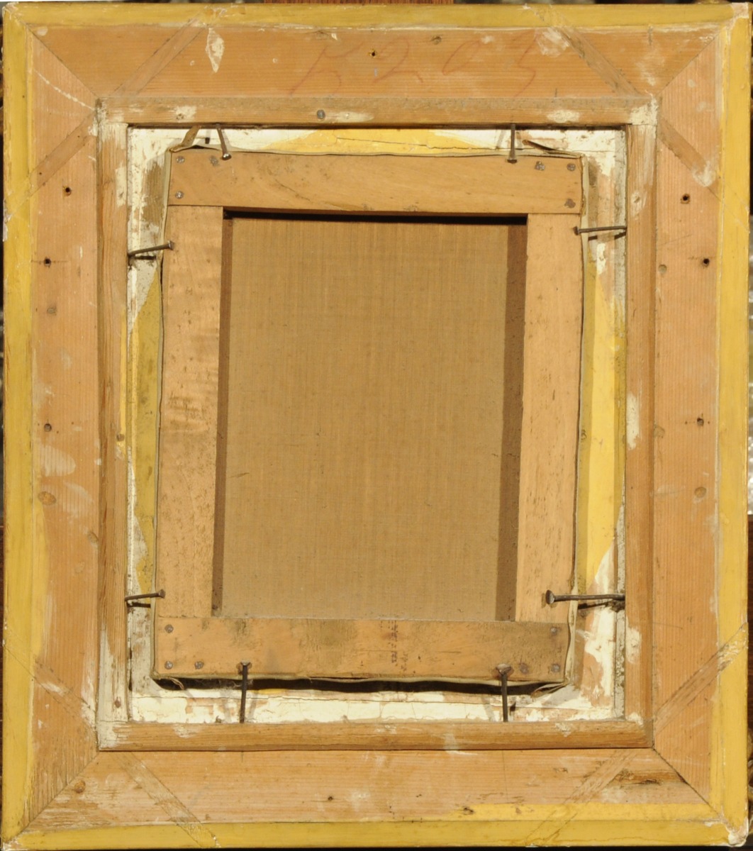 25 x 20 cm. (important cadre en bois sculpté et doré, deux tons)