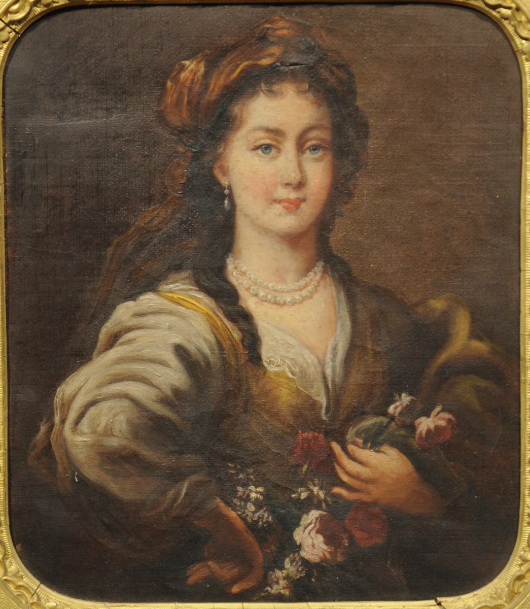 École FRANÇAISE du XIXème siècle.Jeune femme au turban.Huile sur toile.22...
