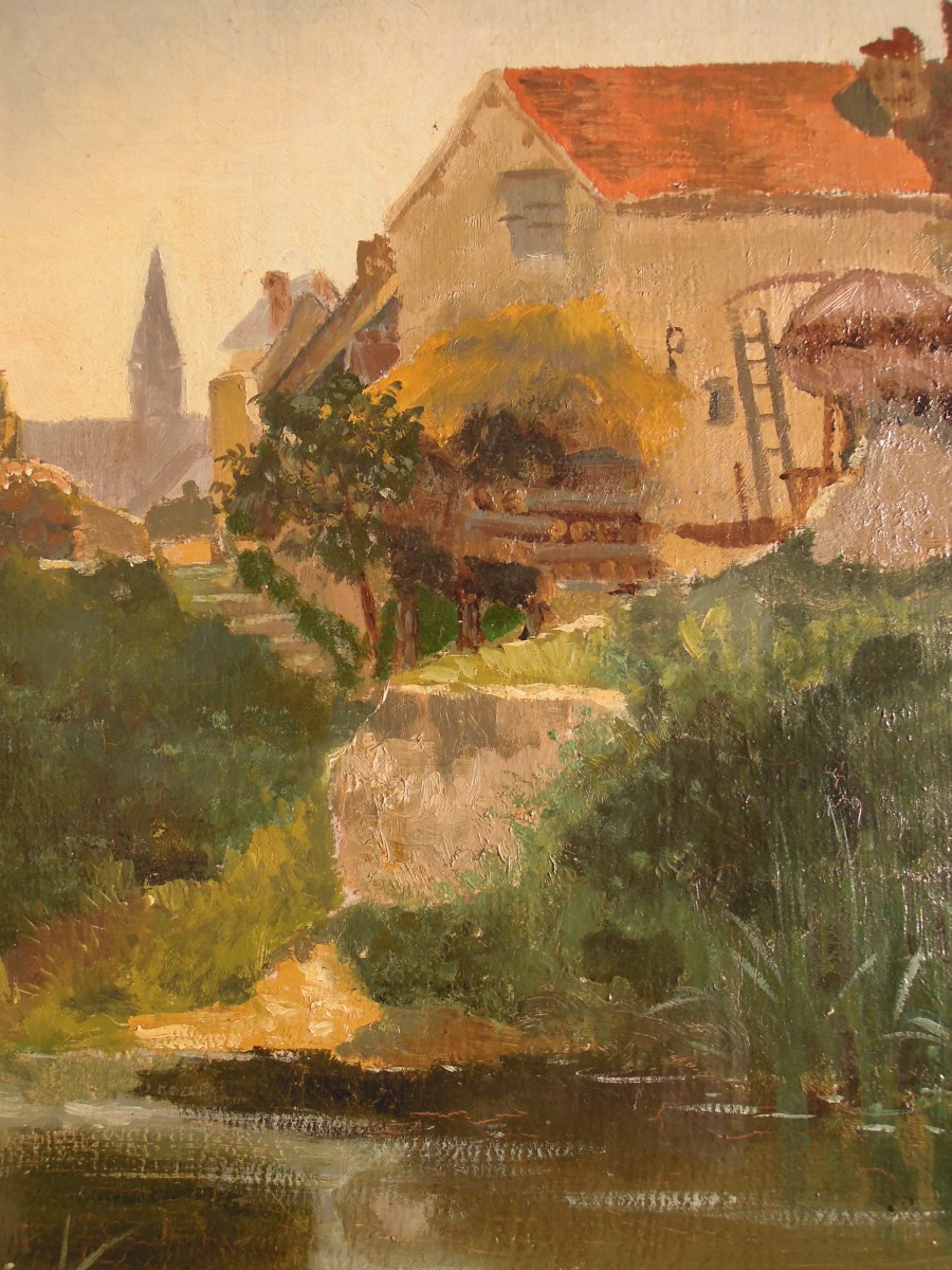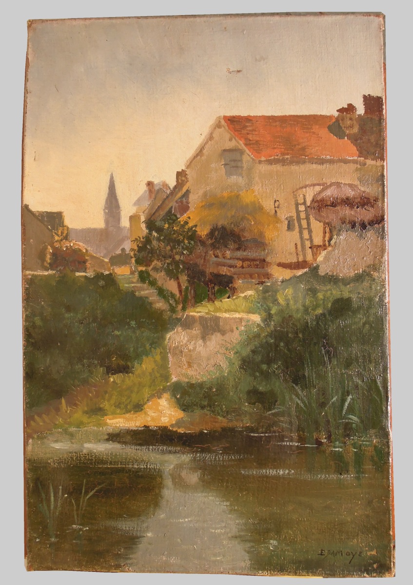 Pierre Emmanuel DAMOYE (1847-1916).Bord de rivière.Toile, signée en bas à...