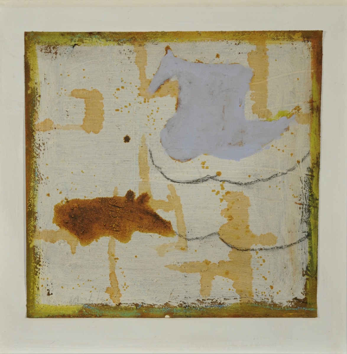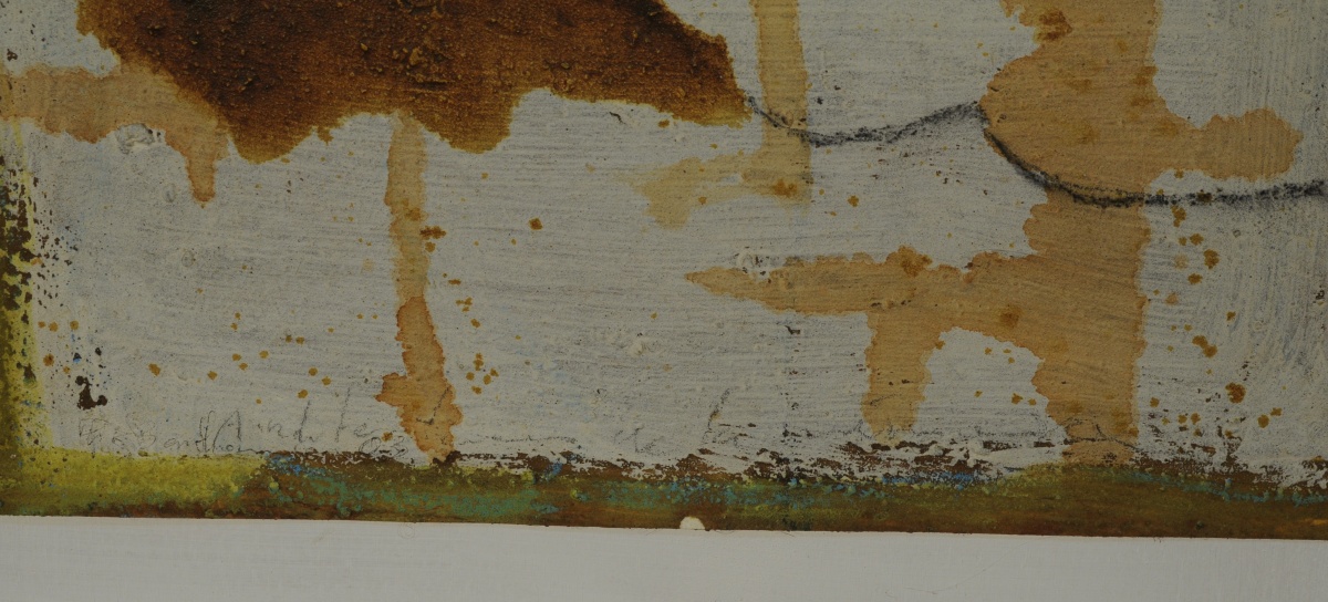Papier fort, signé et collé sur panneau en bas à gauche et daté 03. Inscription manuscrite illisible en bas.