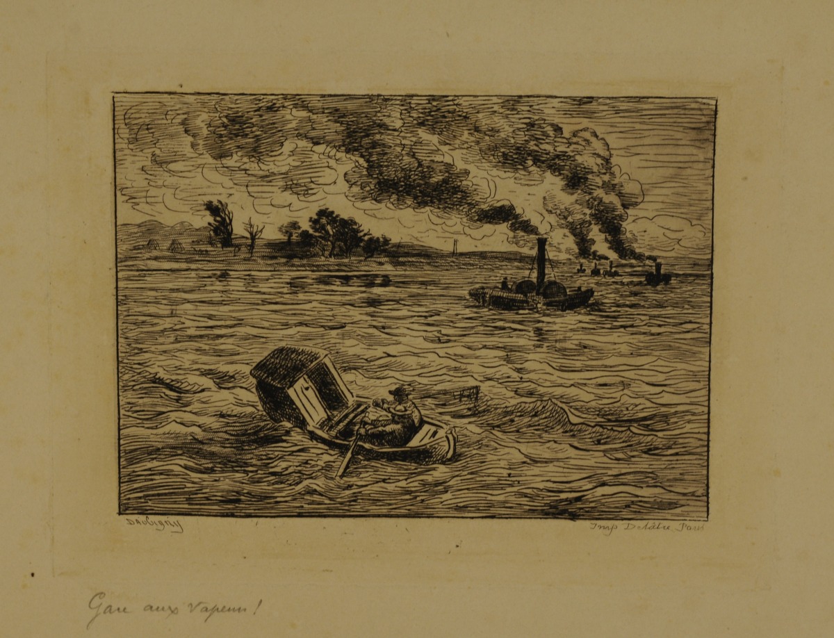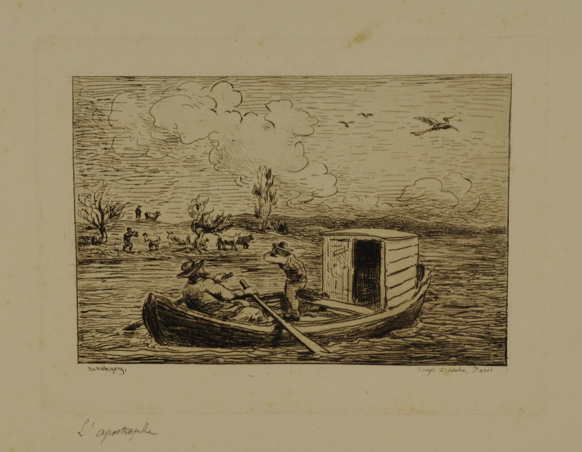 "Voyage en BATEAU. Croquis à l'eau forte par Daubigny 1862."