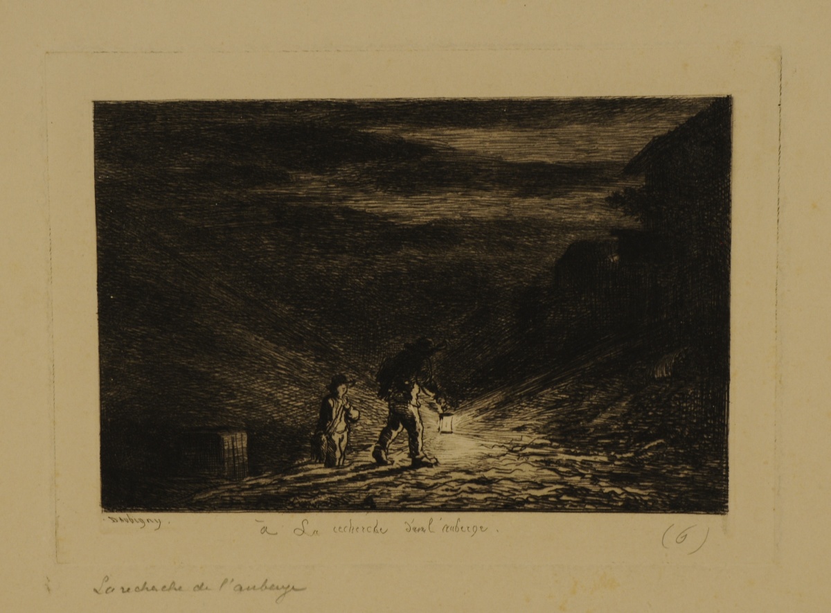 ..."Grâce a ses premiers succès, joints à l'entrée en possession d'un petit héritage, Daubigny put réaliser un rêve révelateur de l'orientation très particulière de sa sensibilité. Il fit construire une péniche, aménagée en vue d'une habitation permanente : c'est à bord du "Bottin" qu'il vivra désormais une existence errante sur les canaux et les rivières, explorant tout le bassin de la Seine, se faisant remorquer et déposer tour à tour au gré de sa fantaisie et de l'attrait des sites. Séjournant sur les eaux dormantes et dans les brouillards humides, Daubigny commença à éprouver de graves symptômes d'épuisement..." E. Bénezit, vol. 4, p.261.