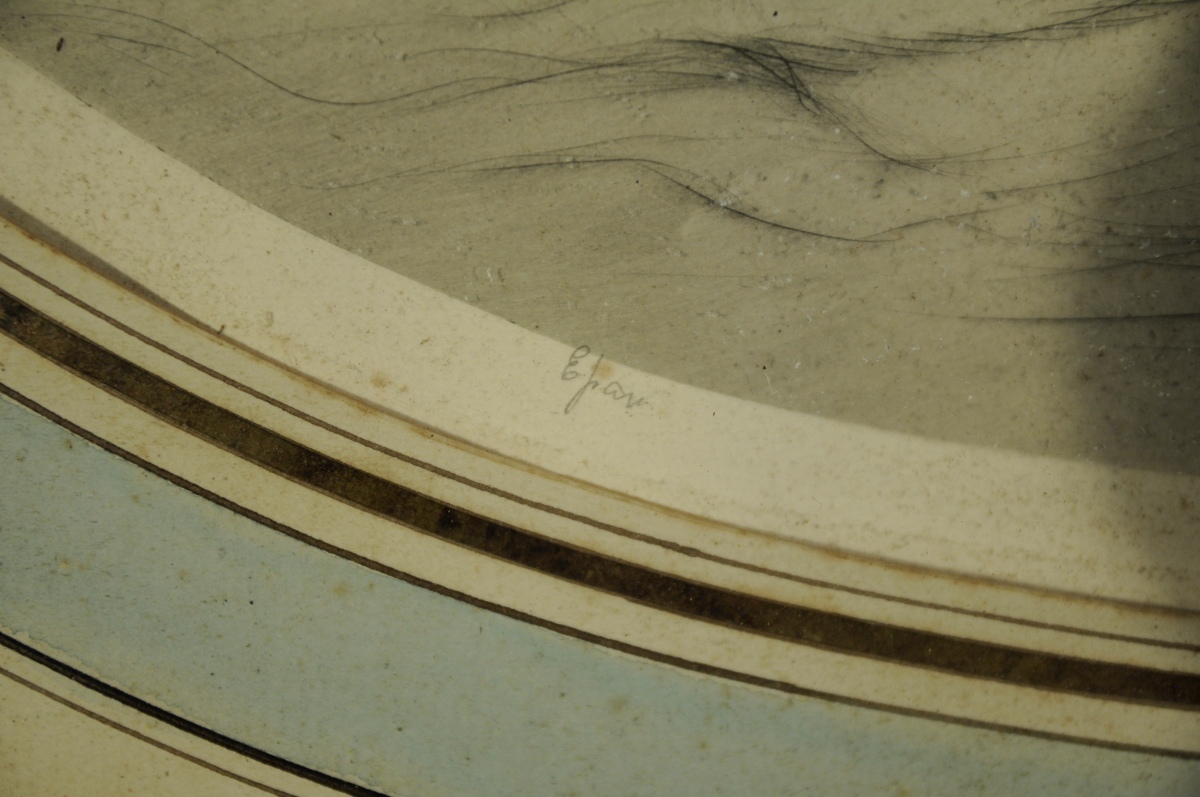 Estampe de forme ovale en couleurs signée en bas à droite.