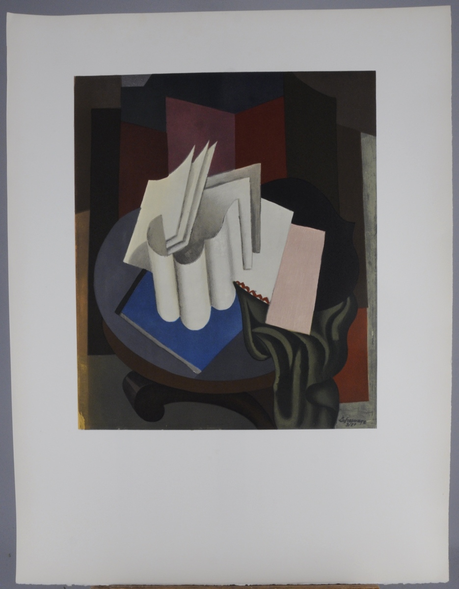 Commande de Camille Renault dérivée de l'affiche de la première Biennale de Peinture à l'Hôtel de Ville de Puteaux du 14 juin au 10 juillet 1966 imprimée par Mourlot d'après la toile "Les feuilles blanches" (Vente Sothebys, Paris, 3 juin 2010, n°78).