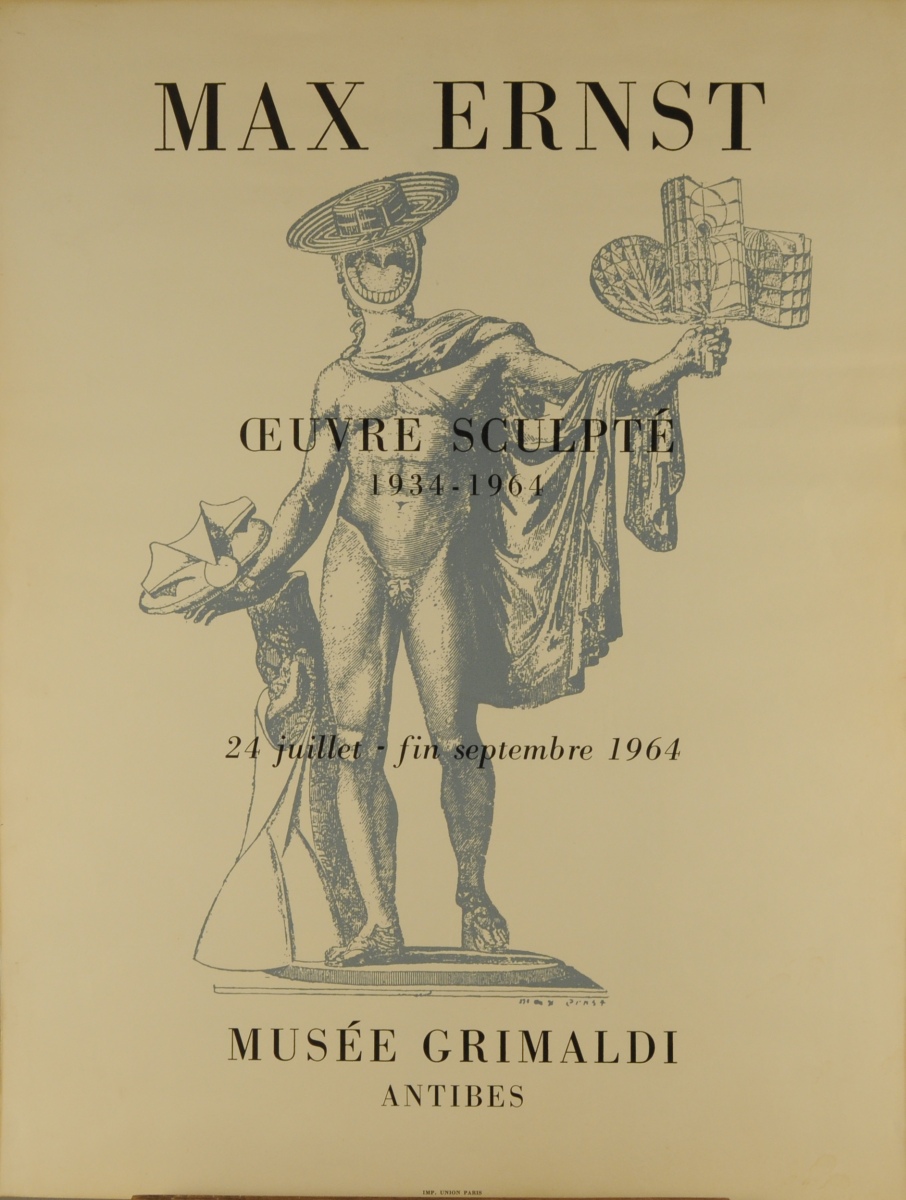 - "MAX ERNST, Oeuvre sculpté, 1934 - 1964, 24 juillet - fin septembre 1964, Musée Grimaldi Antibes". 65 x 50 cm.