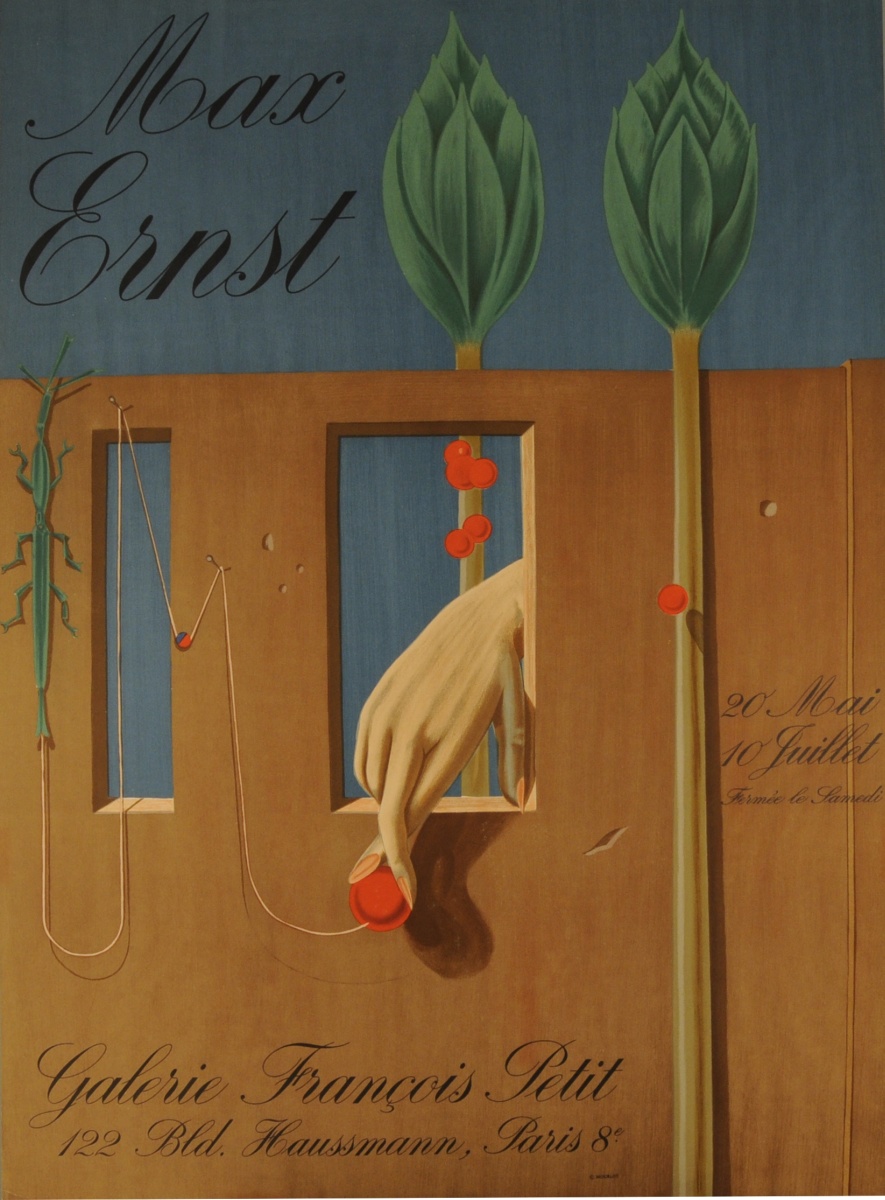 - "MAX ERNST, 20 mai - 10 juillet, Galerie François Petit, 122 Bld, Haussmann, Paris 8e". 75 x 54 cm.